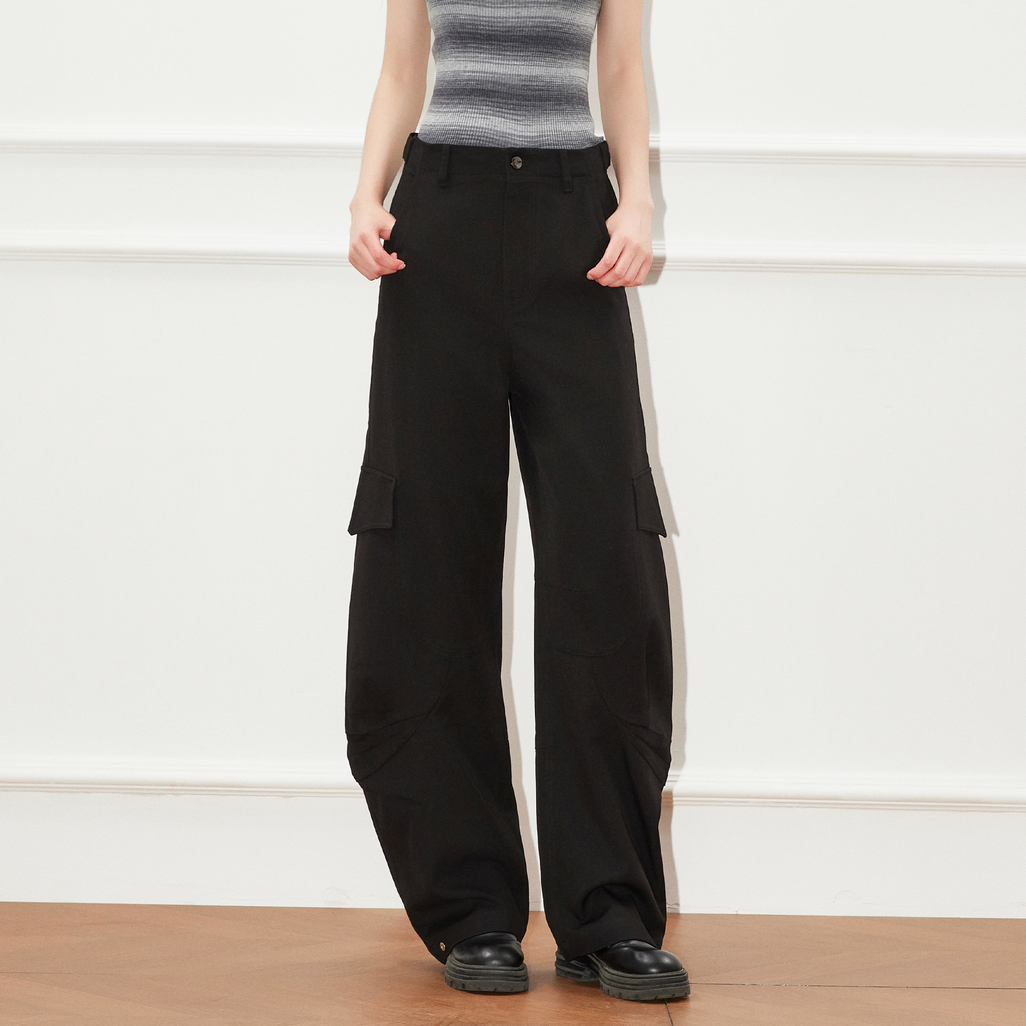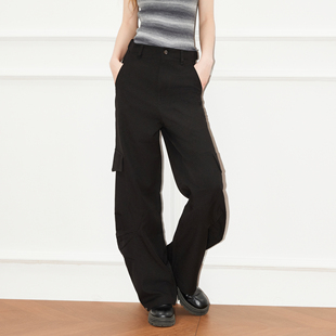 直筒休闲裤 百家好工装 女2025秋季 新款 子 Basic 黑色显瘦长裤 House