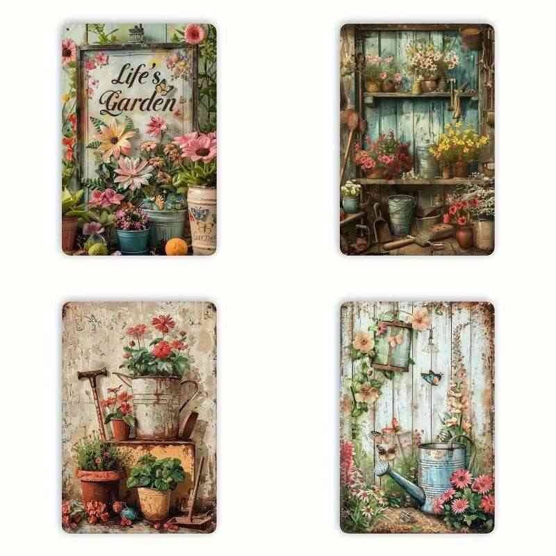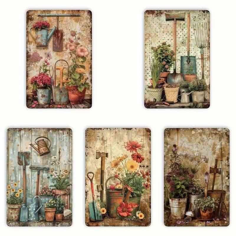 花园锡标牌复古花卉植物园艺工具庭院酒吧奶茶乡村墙壁装 饰铁皮画