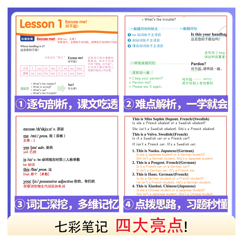 含音频 教材全解课堂笔记自学英语零基础中小学英语学者框架子金传媒正版 七彩笔记新概念英语1 外研社新概念英语智慧版 书 焦颖
