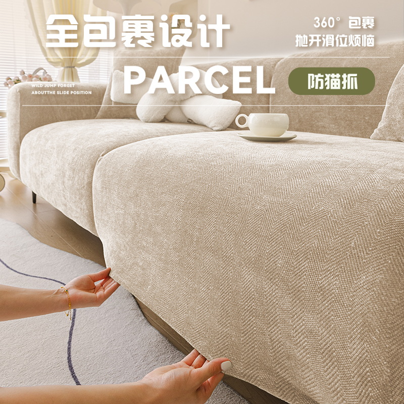 2025新款 通用全包坐垫套罩盖毯子 鱼骨纹雪尼尔沙发巾沙发盖布四季
