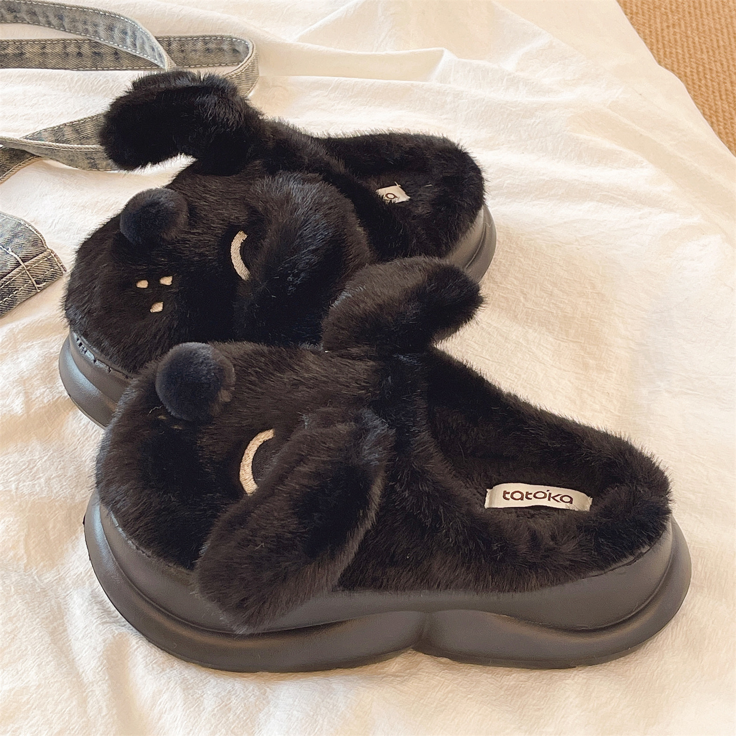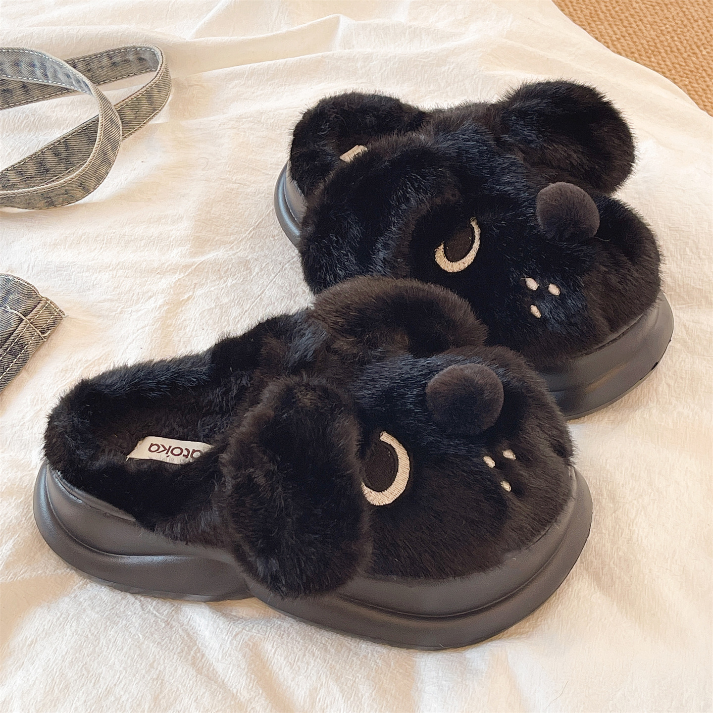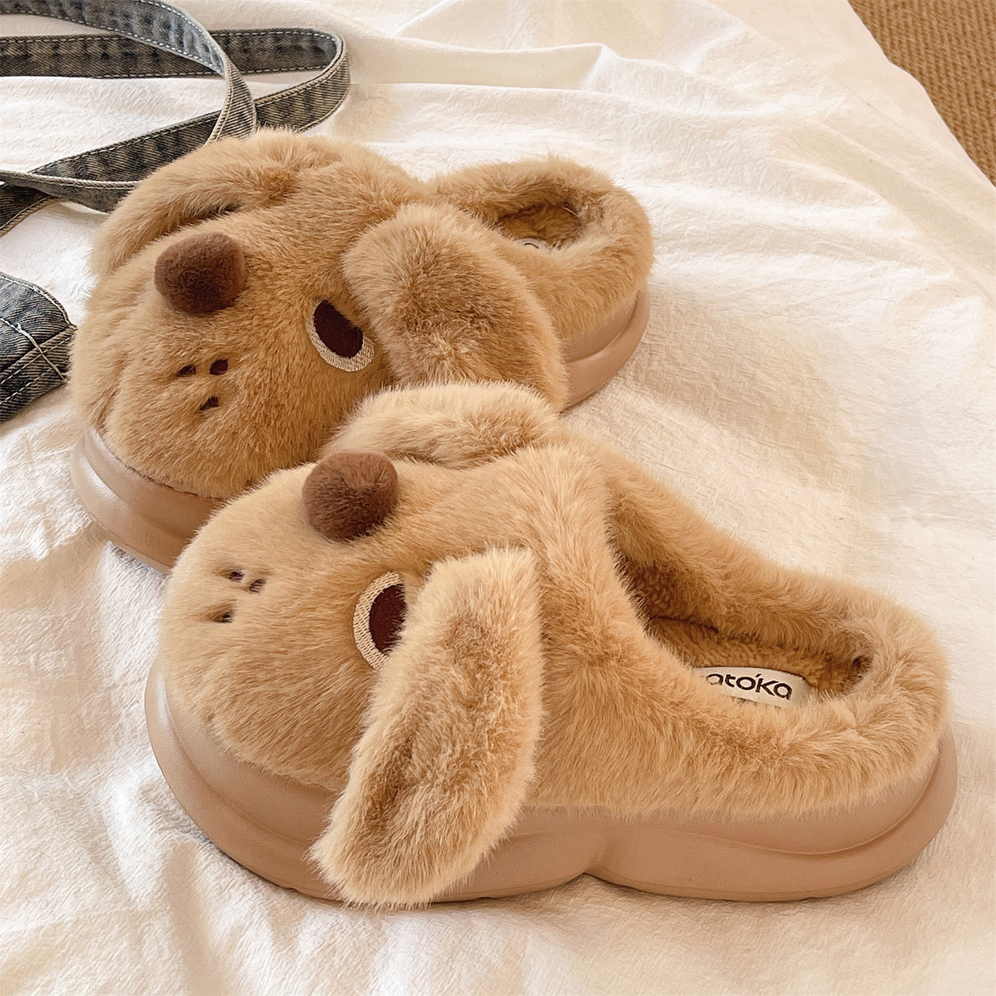 可爱狗狗室内居家保暖加绒防滑增高厚底包头棉拖鞋 毛毛拖鞋 女冬季