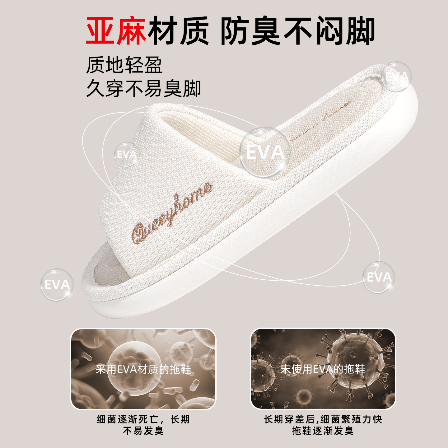 德国医护级亚麻拖鞋 女2025居家吸汗防滑防臭抑菌无声医用棉麻拖鞋