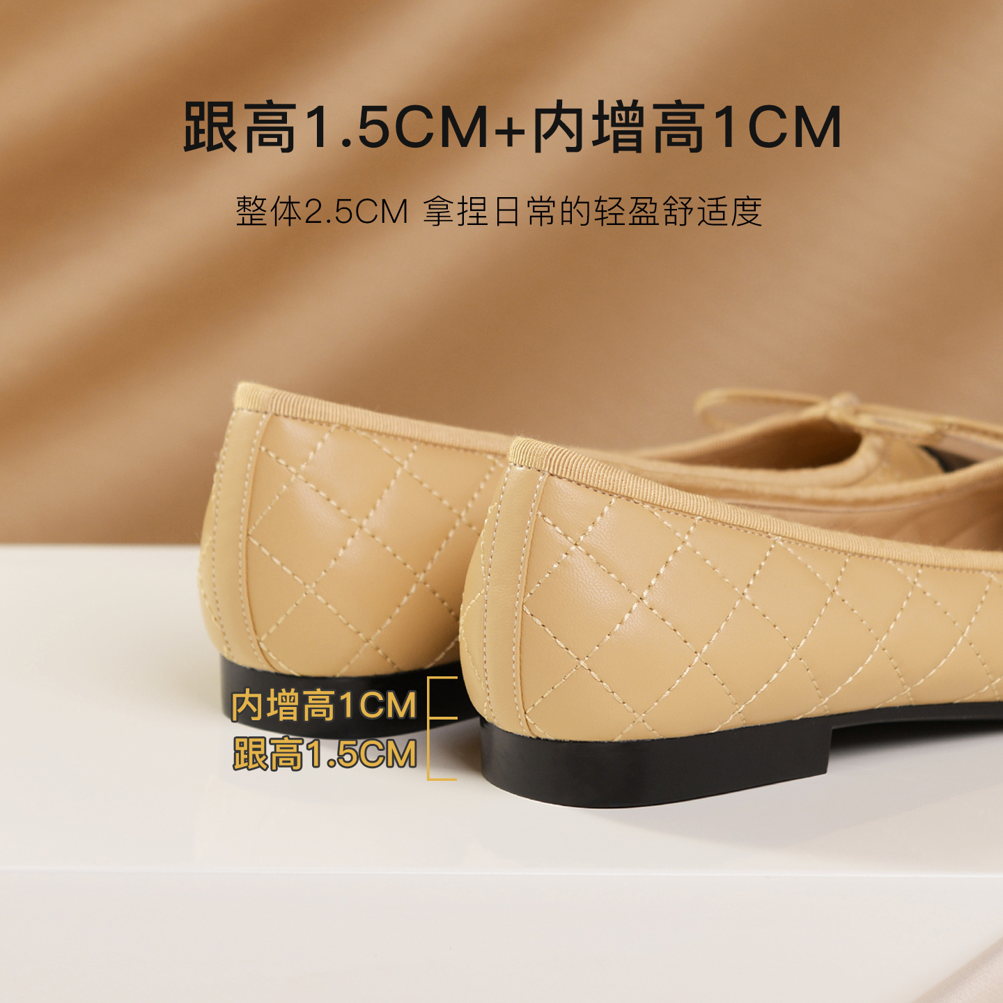 绝美气质通勤平底鞋 小个子内增高裸色方扣浅口单鞋 女2025春夏新款