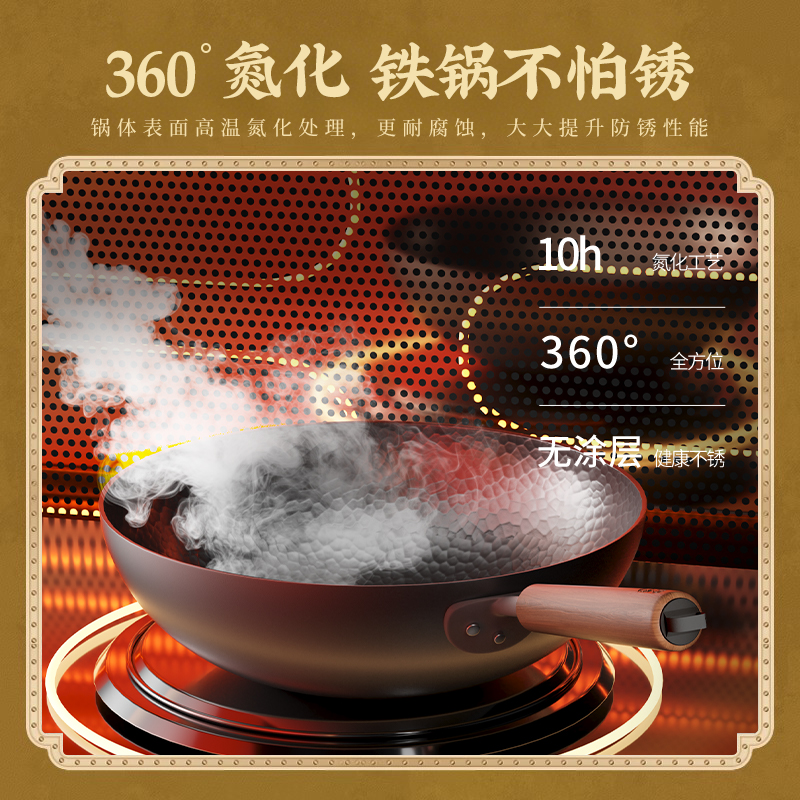 章丘炒菜锅传统铁锅官方旗舰老式 炒锅家用不粘锅无涂层燃气灶适用