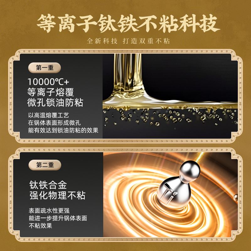 苏泊尔铁锅不粘锅有钛无涂层炒锅家用炒菜锅免开锅电磁炉燃气专用