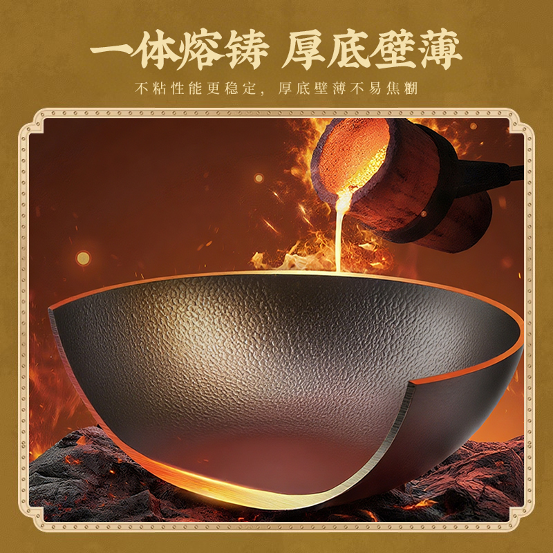 烹帝大肚铁锅炒锅家用炒菜不粘锅燃气灶电磁炉专用章丘锅具旗舰店