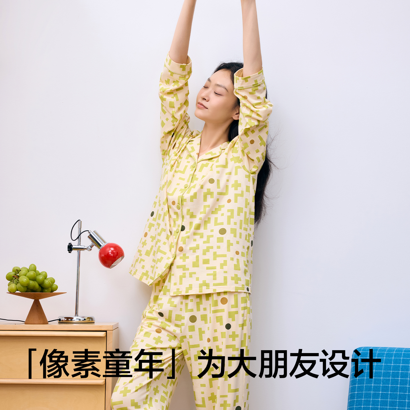 酷猫系列 休闲简约家居服套装 睡衣女春秋格纹衬衫 长裤 长袖 yso