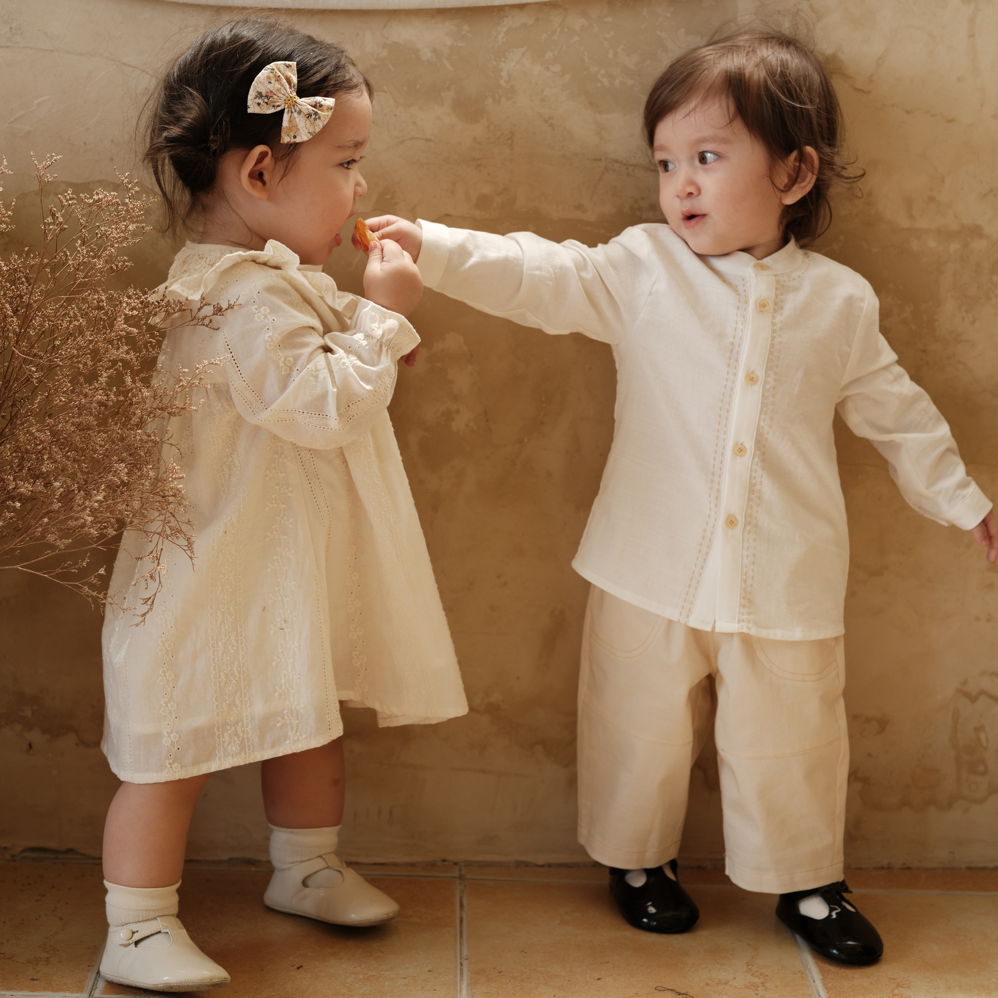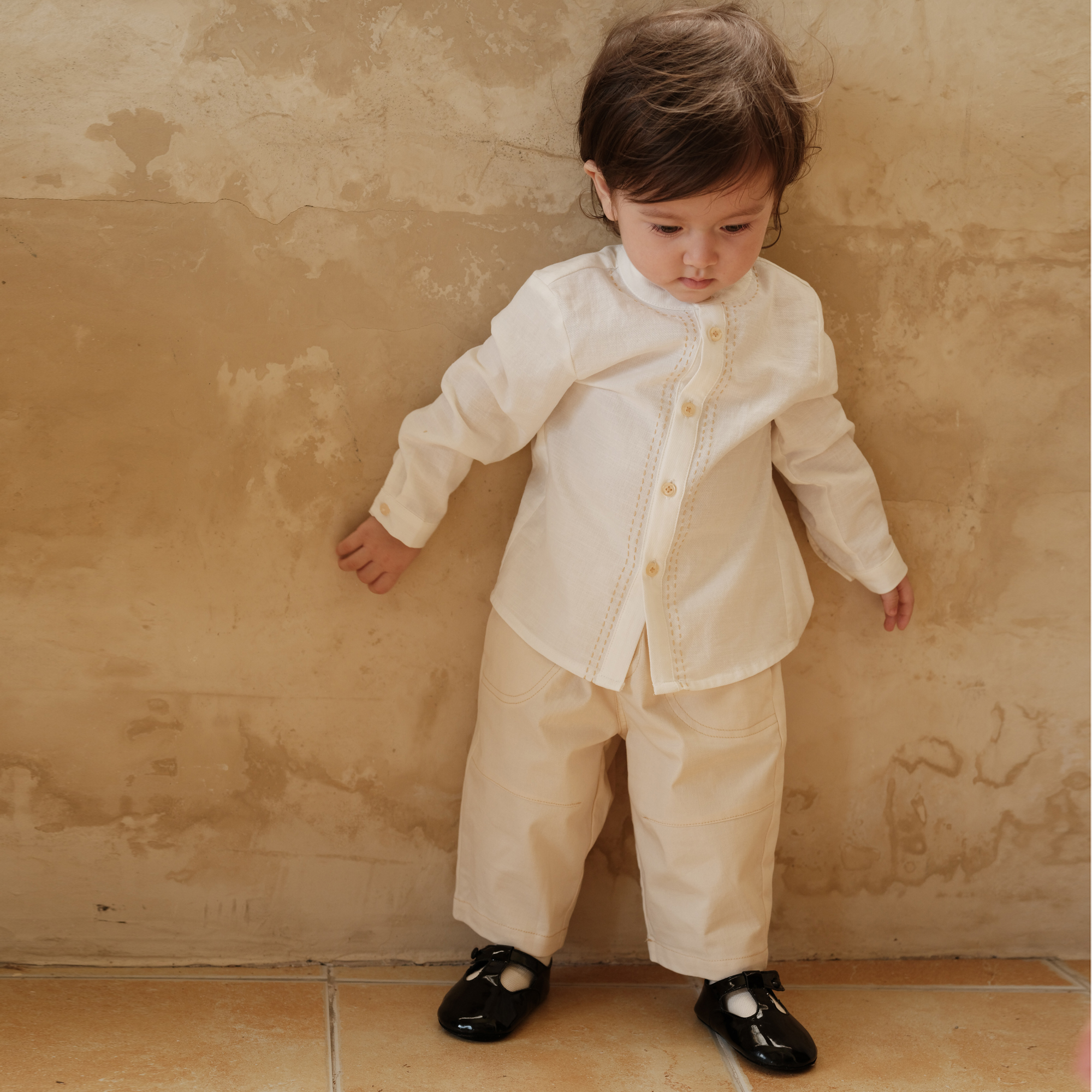 柔软长袖 秋季 透气上衣 sailors男童纯棉立领绣花衬衣兄妹装 three