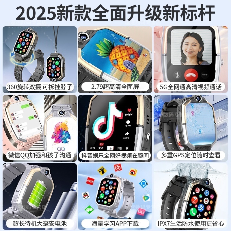 儿童电话手表智能大屏定位初中小学高中学生专用视频通话任意下载app可插卡全网通WiFi防水5G定位 官方正品
