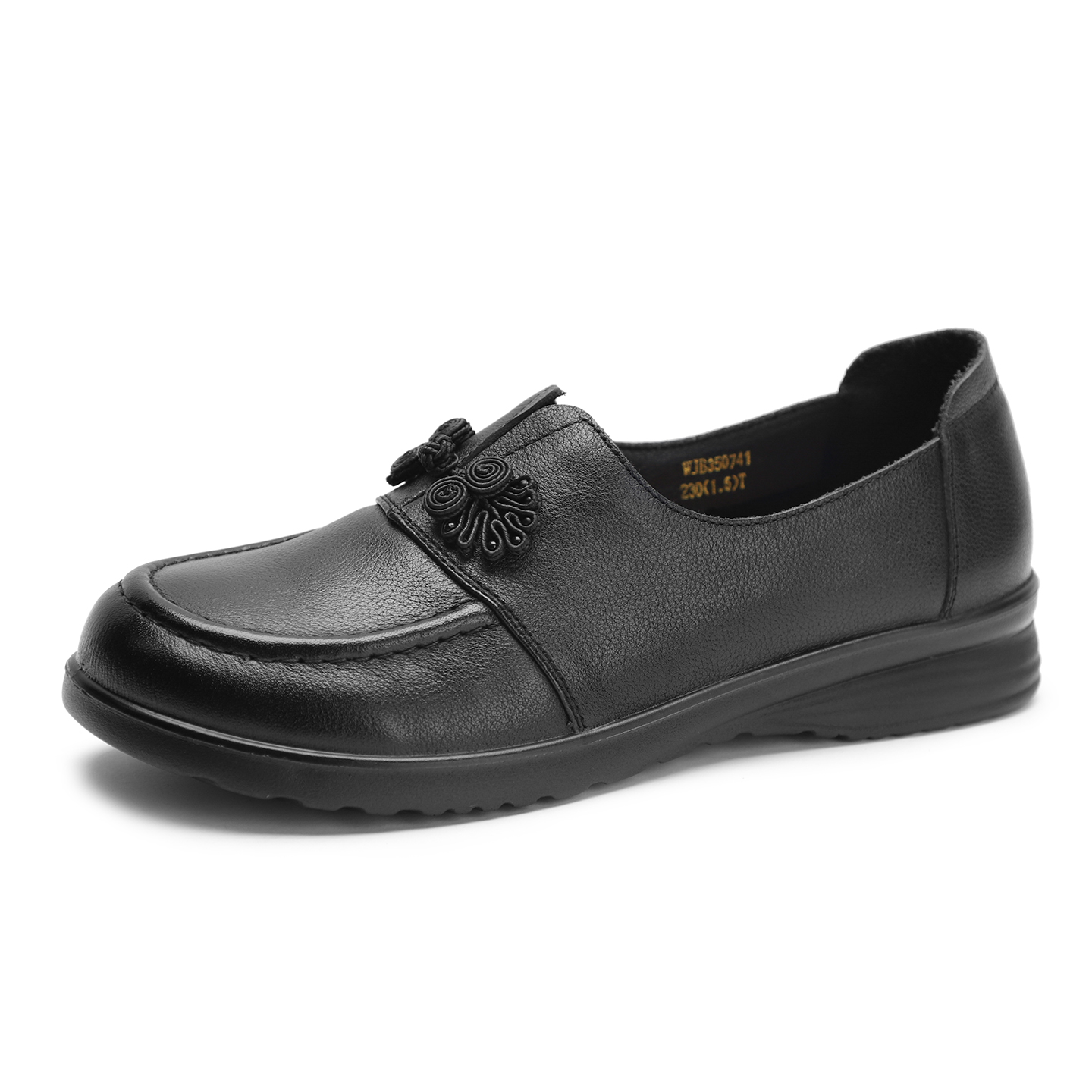 2025秋季 平底单鞋 新款 一脚蹬懒人鞋 真皮软底舒适妈妈鞋 红蜻蜓女鞋