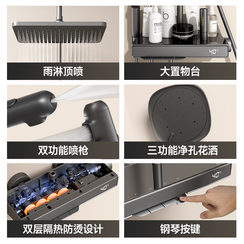 淋浴花洒套装 家用卫浴浴室洗澡龙头三件套增压喷头沐浴器普通恒温