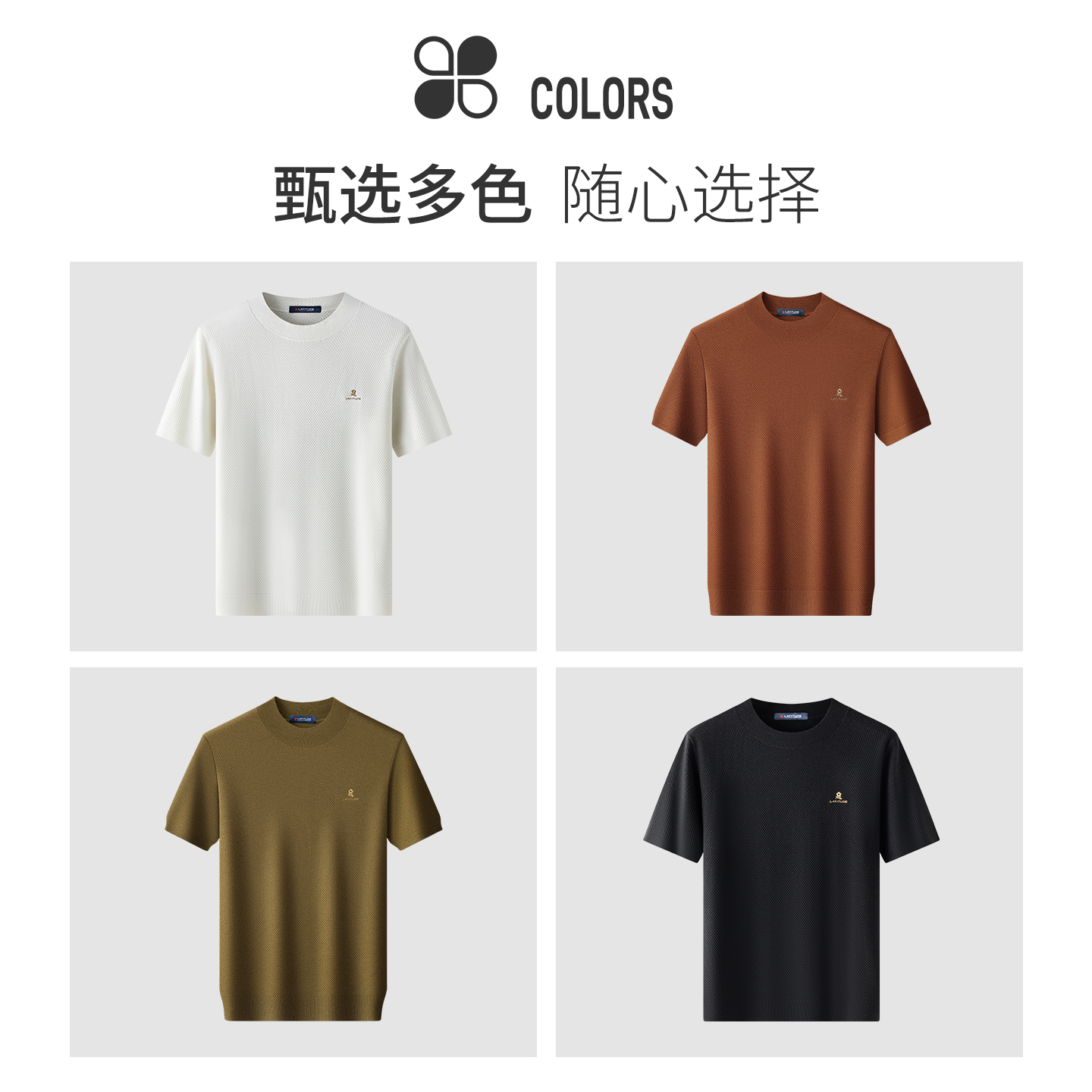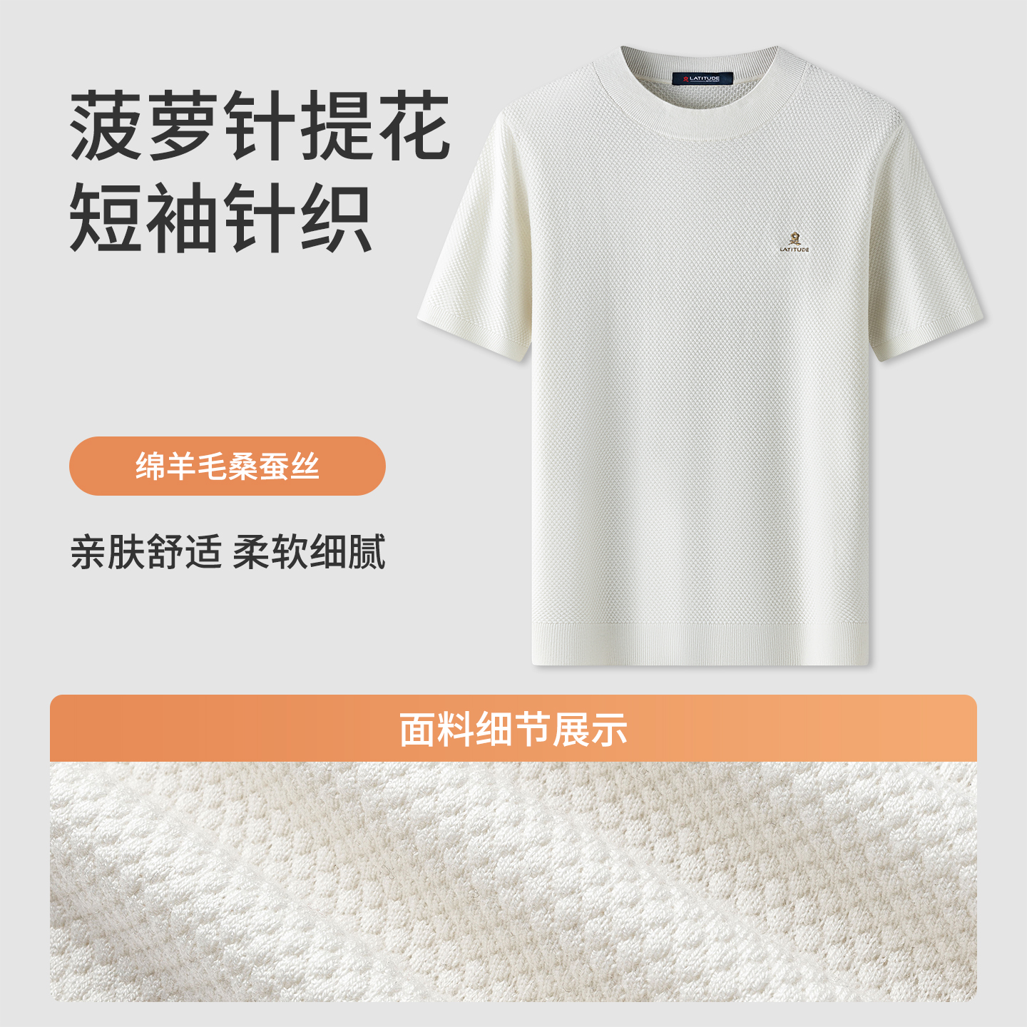 短袖 梦特娇秋冬男纯色羊毛针织衫 菠萝针 T恤圆领毛衣J 羊毛蚕丝