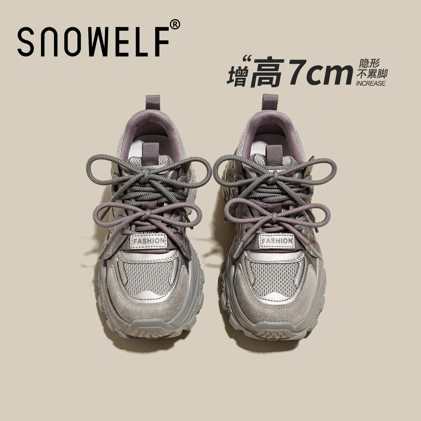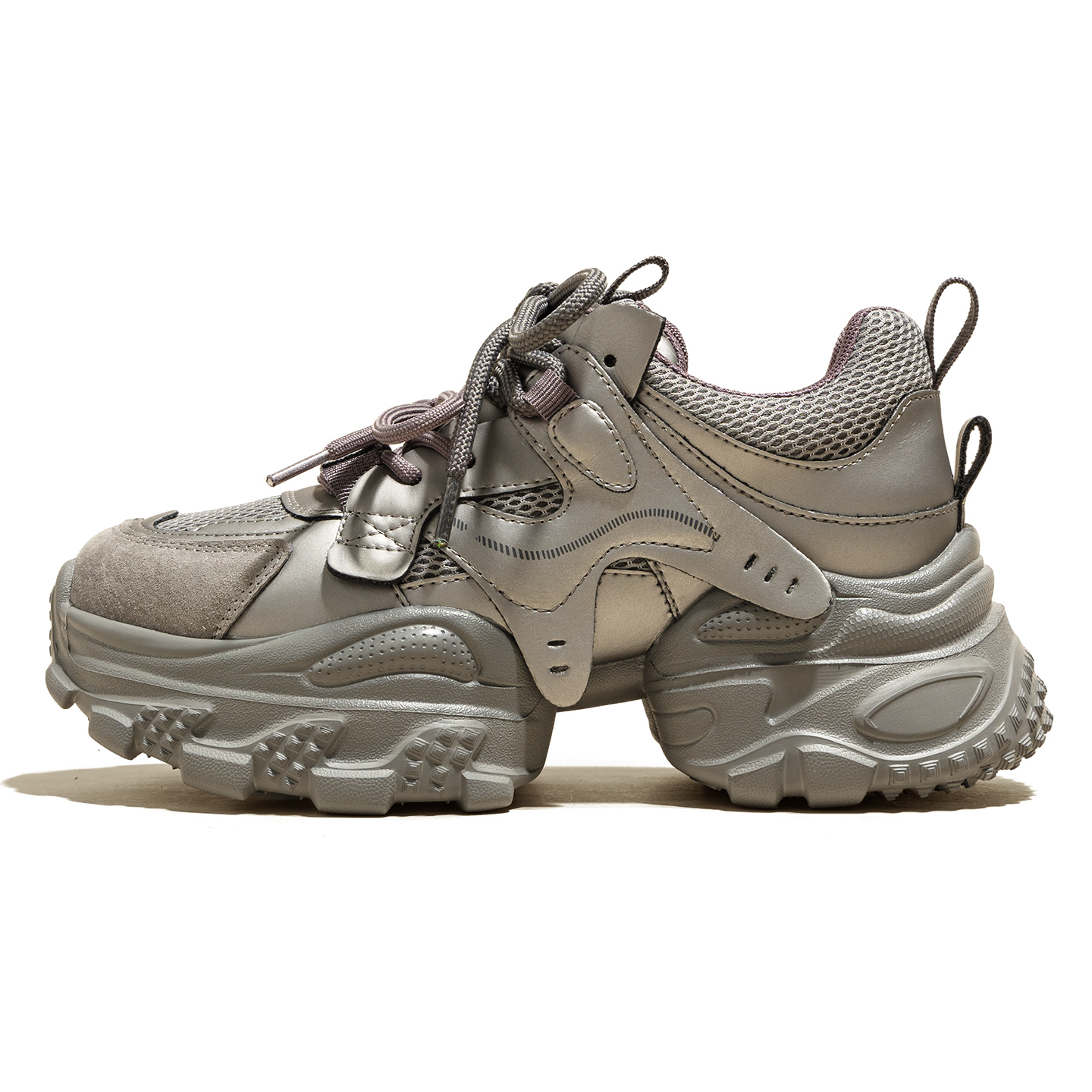 爆款 2025新款 秋季 轻便透气运动休闲鞋 银色厚底老爹鞋 增高鞋 子女款