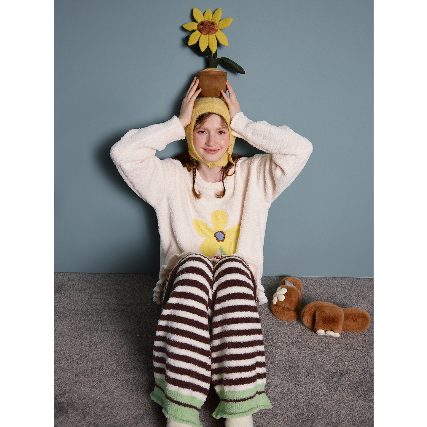 家居服套装 卡之恋长袖 纯棉加厚带胸垫冬睡裤 2025新款 睡衣女春秋季