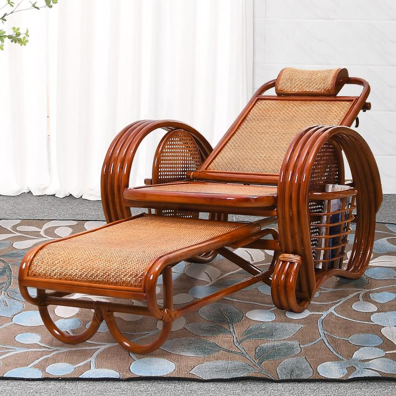 天然真藤椅躺椅折叠椅老人午睡椅懒人休闲藤编高靠背调节逍遥椅