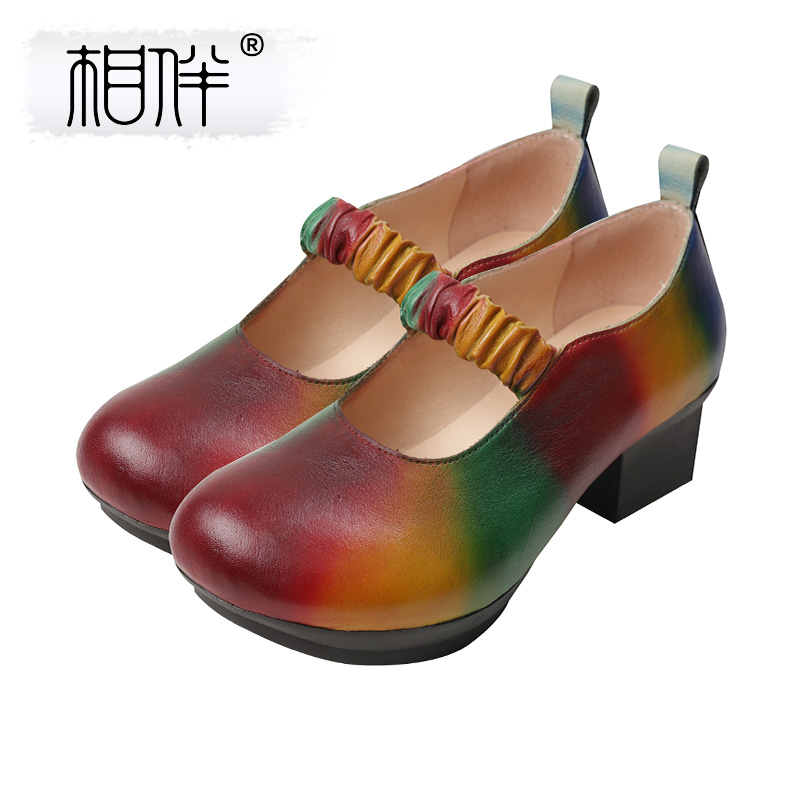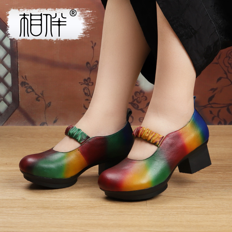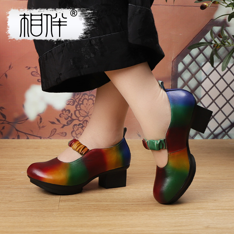 仙女风瓢鞋 秋季 浅口百搭中跟奶奶鞋 大码 真皮单鞋 女鞋 粗跟2025新款