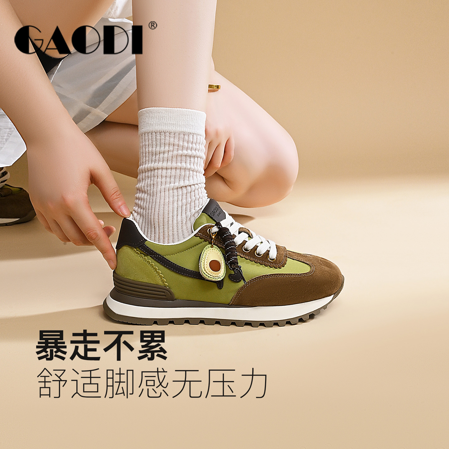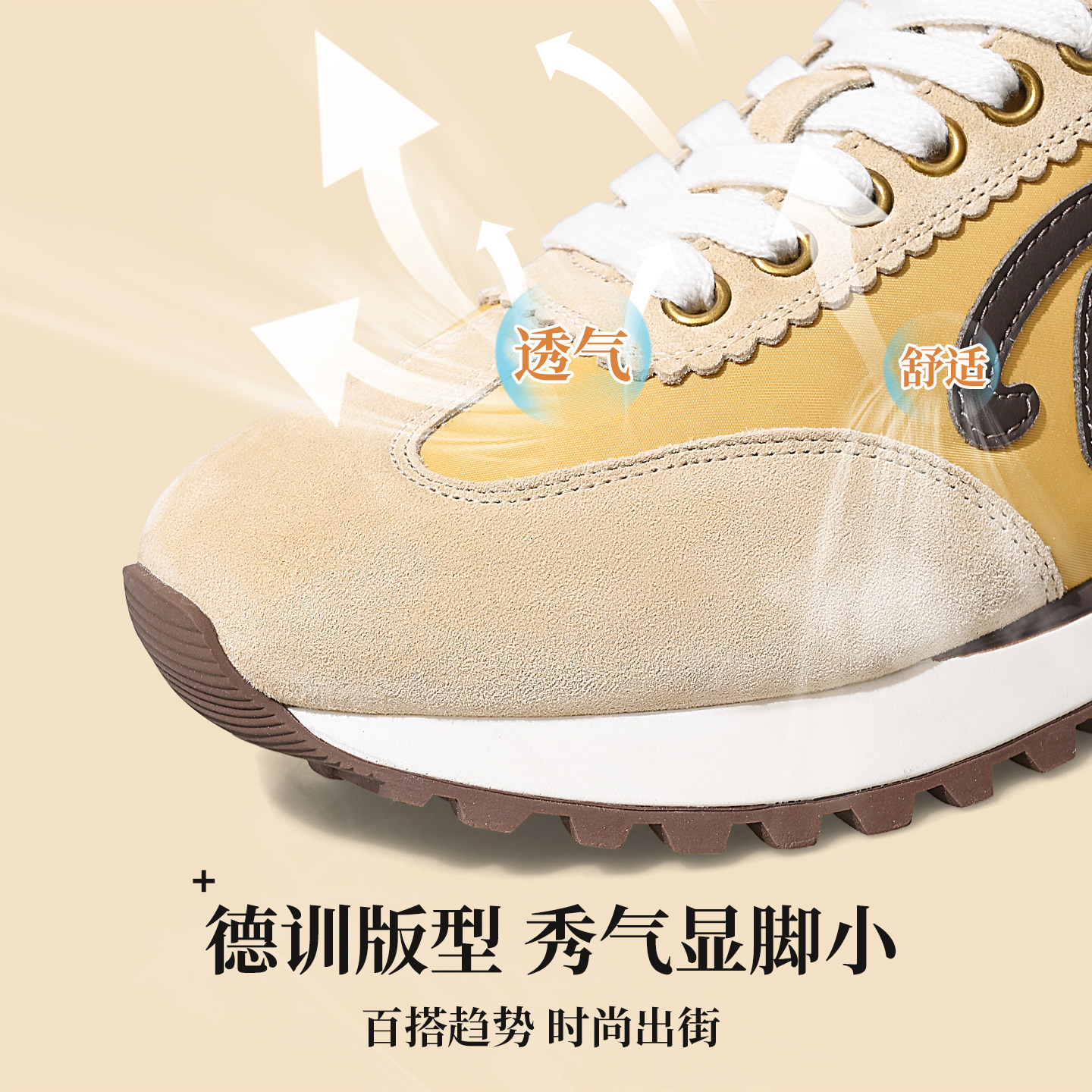 女款 休闲运动鞋 2025秋季 棕色内增高设计感小众时尚 新款 人本德训鞋