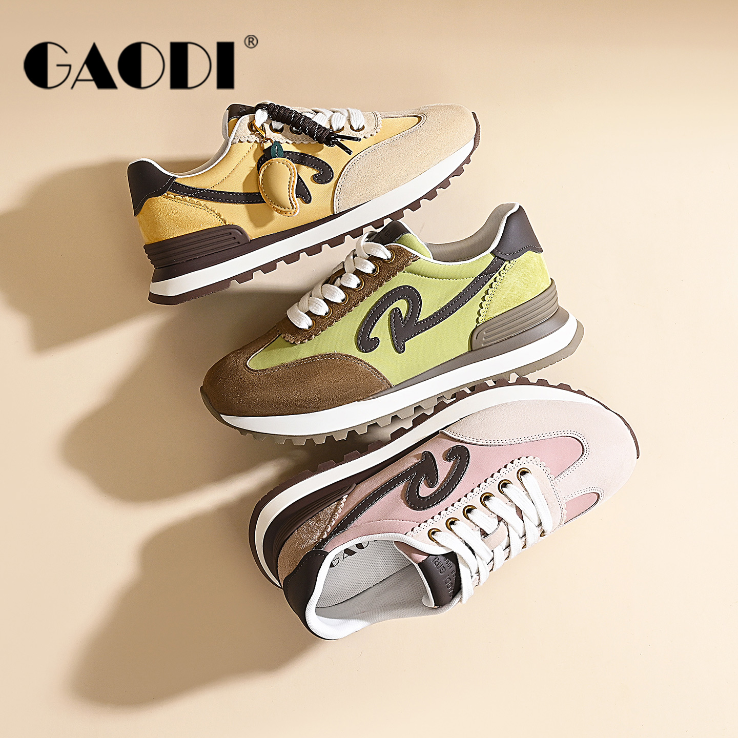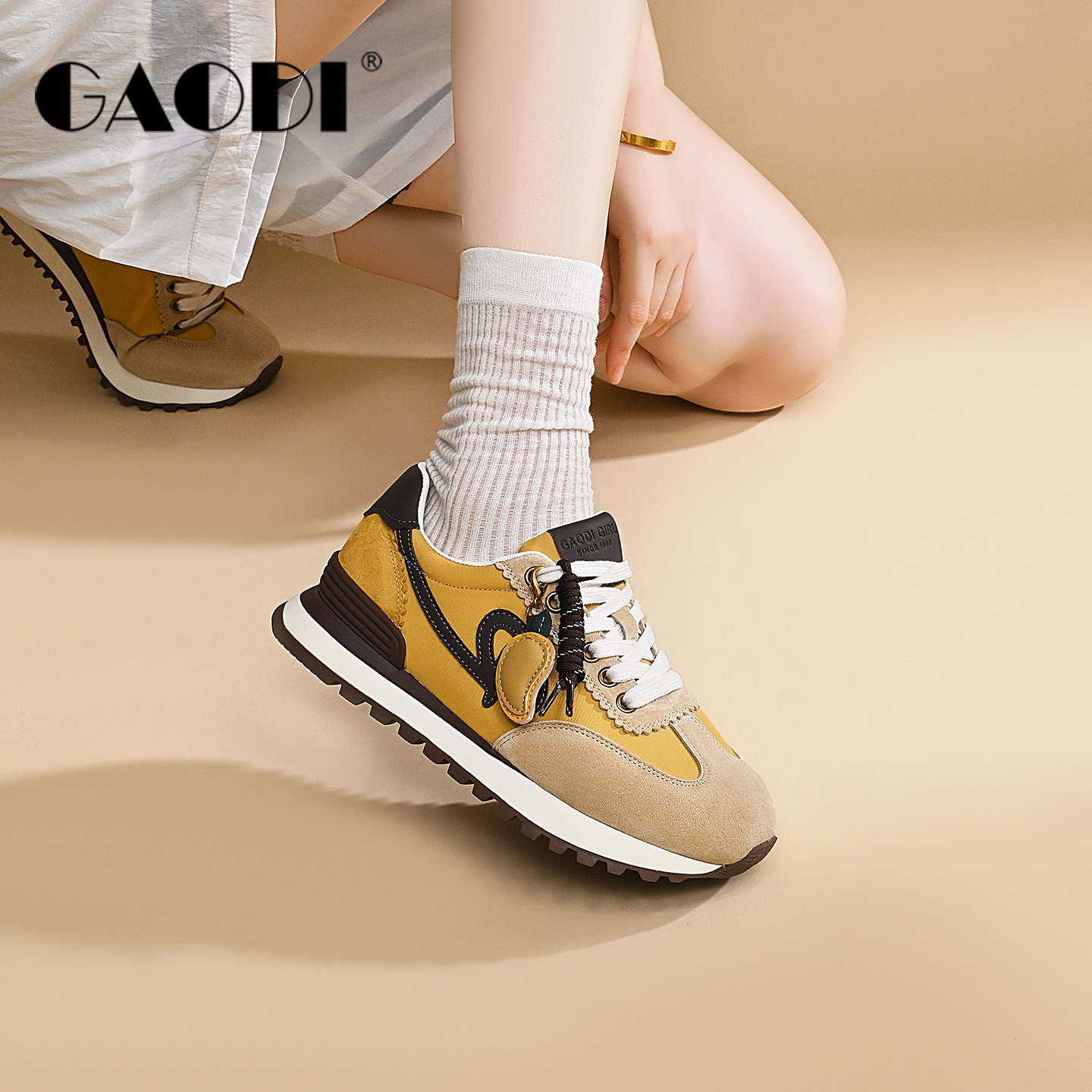 女2025新款 子运动休闲板鞋 秋季 百搭阿甘鞋 爆款 拉夏贝尔黄色德训鞋