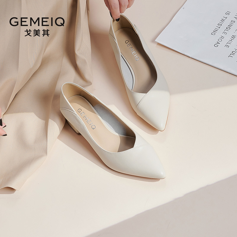 子 气质颜值百搭通勤上班鞋 戈美其女士高跟鞋 春秋方跟增高显瘦女鞋