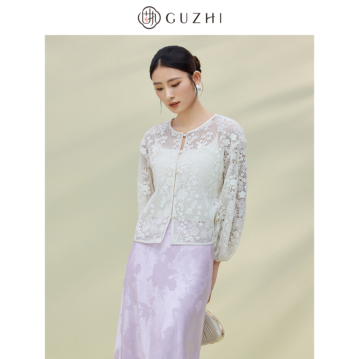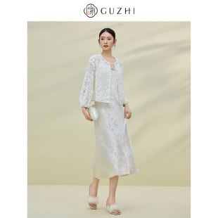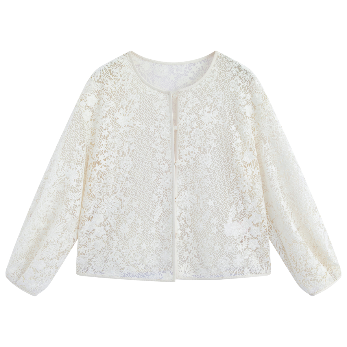 新款 外套开衫 新中式 短款 通勤气质圆领蕾丝绣镂空长袖 固执2025秋季