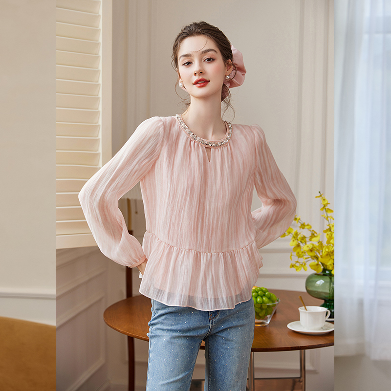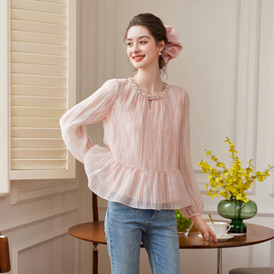 上衣杏 女秋冬加厚保暖气质内搭打底小衫 花边立领加绒蕾丝长袖 衬衫