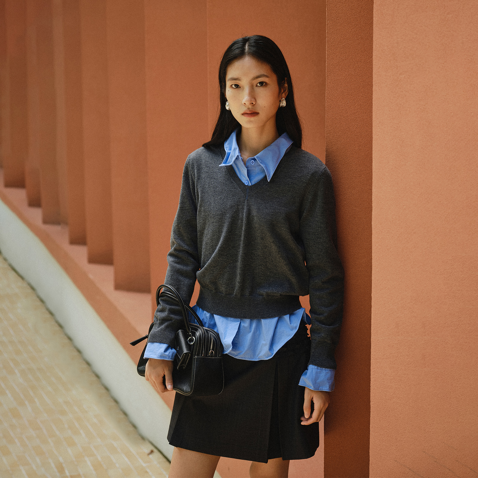 衬衣女05345882 纯棉复古风娃娃领长袖 佐丹奴灯芯绒衬衫 女秋冬新款