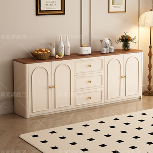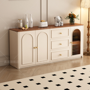 法式 餐边柜一体靠墙厨房储物柜橱柜小户型客厅圆弧角置物柜茶水柜