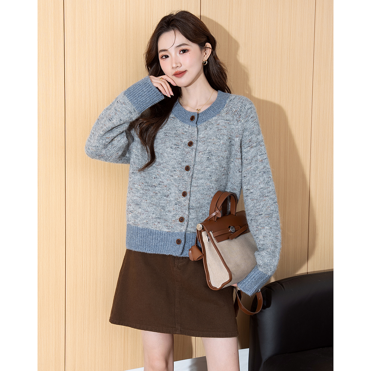 新款 女2025秋季 宽松圆领毛衣 针织开衫 飞鸟和新酒插肩袖