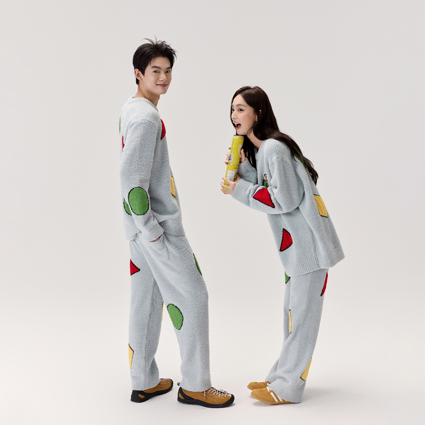 半边绒卡通情侣保暖可外穿秋冬睡衣家居服套装 亲嘴猫 蜡笔小新