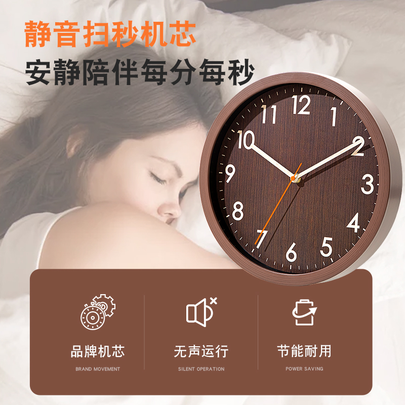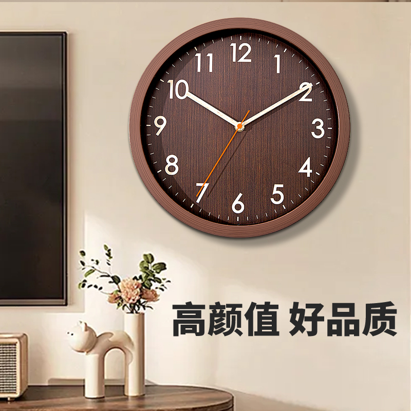 新款 简约现代钟表石英钟挂表木纹 静音客厅书房挂钟日式