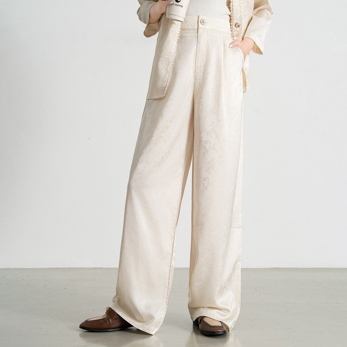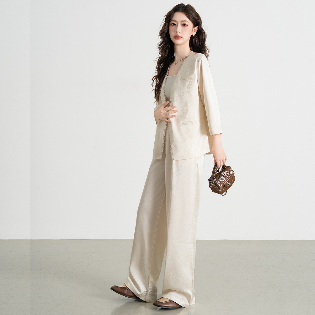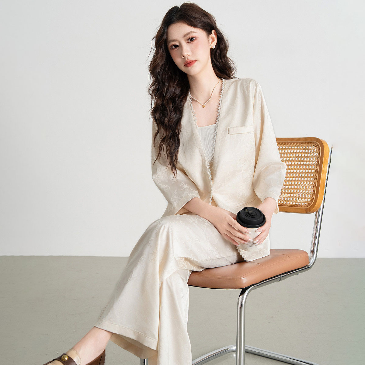 V领提花西服外套阔腿长裤 女秋冬款 两件套J 休闲通勤套装 班尼路时尚