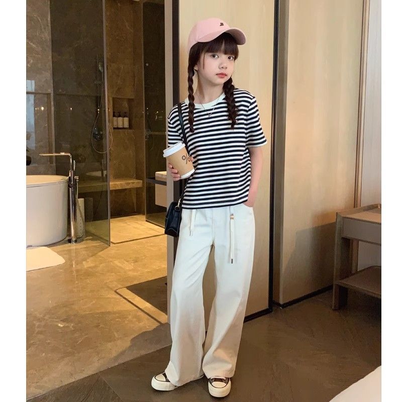 女童春秋白色时尚 女童装 直筒裤 百搭气质长裤 中大童新款 儿童休闲裤