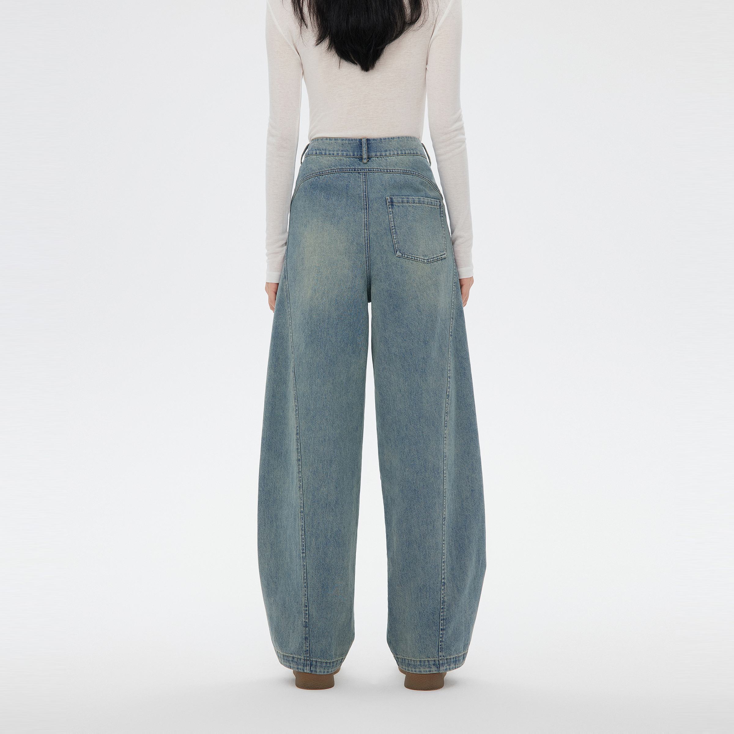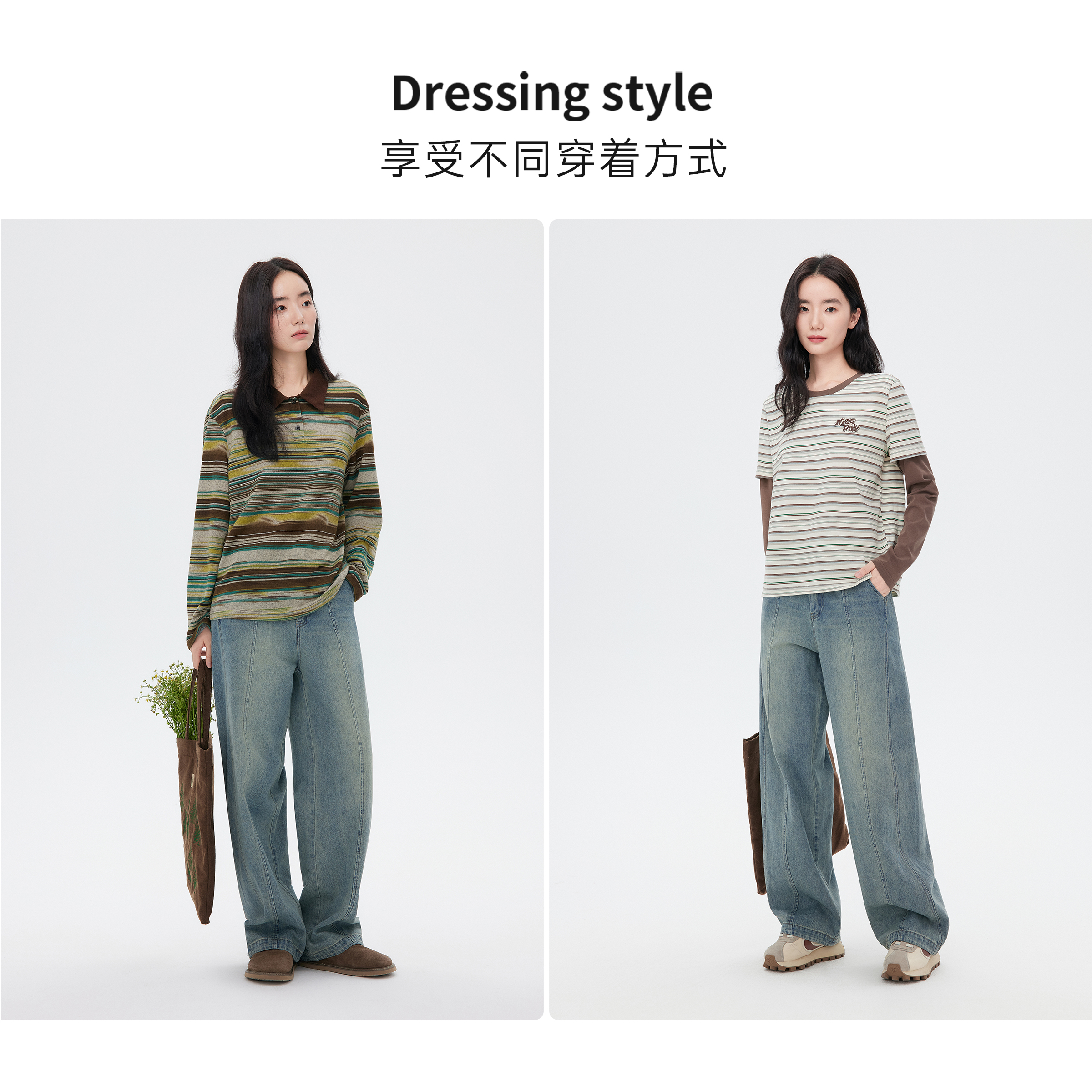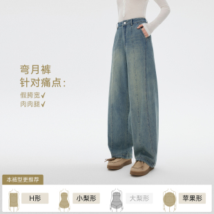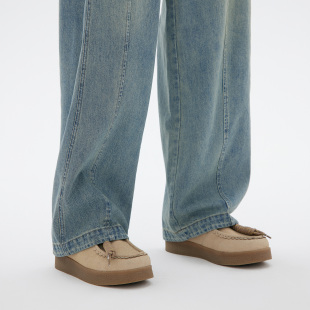 女2025年新款 子女装 秋季 复古宽松直筒阔腿裤 504791 时尚 三福牛仔裤