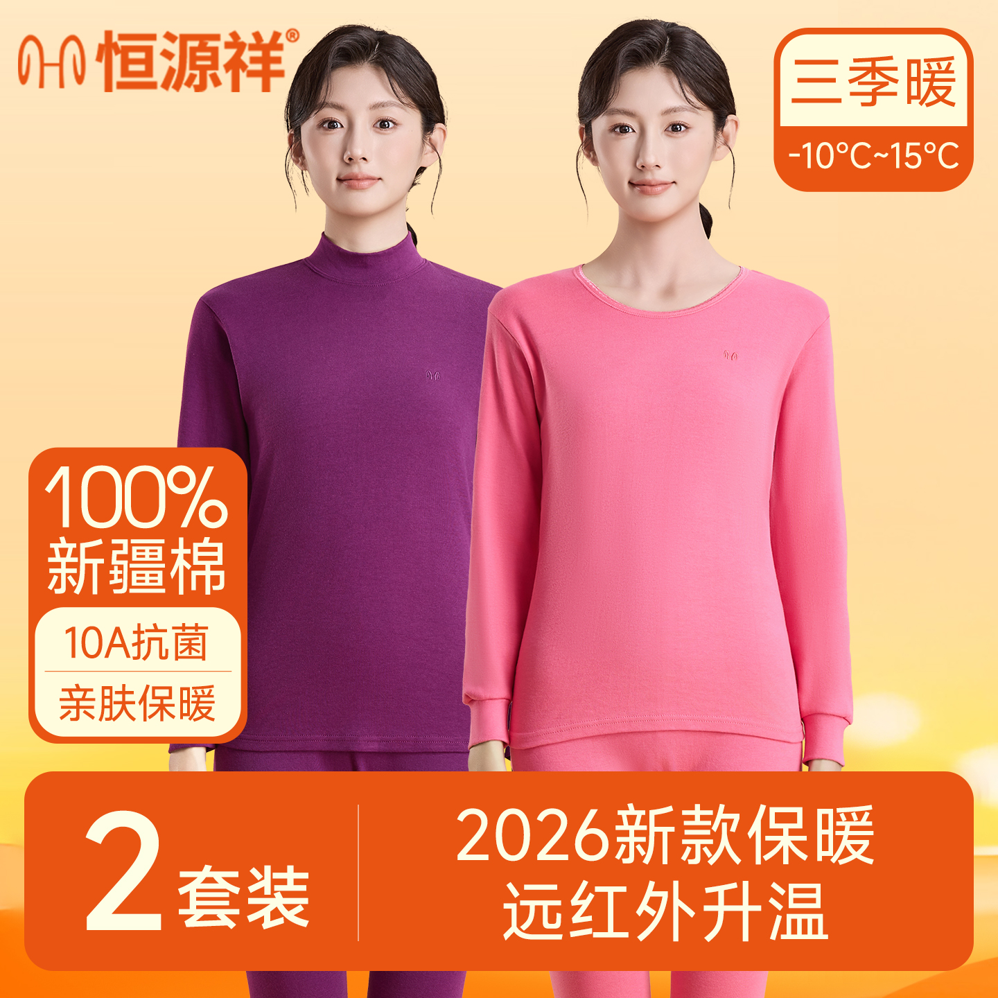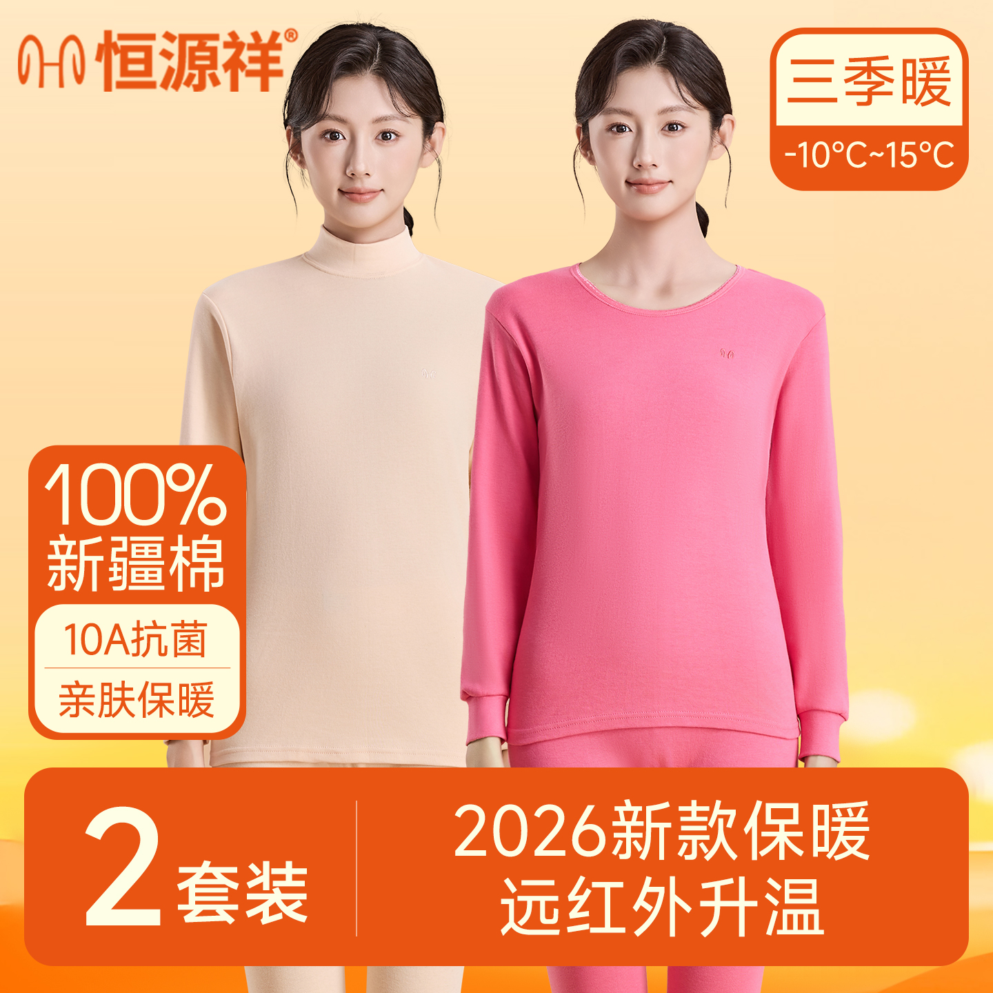 保暖内衣发热抗寒棉毛衫 纯棉防寒线衣薄款 女套装 恒源祥秋衣秋裤