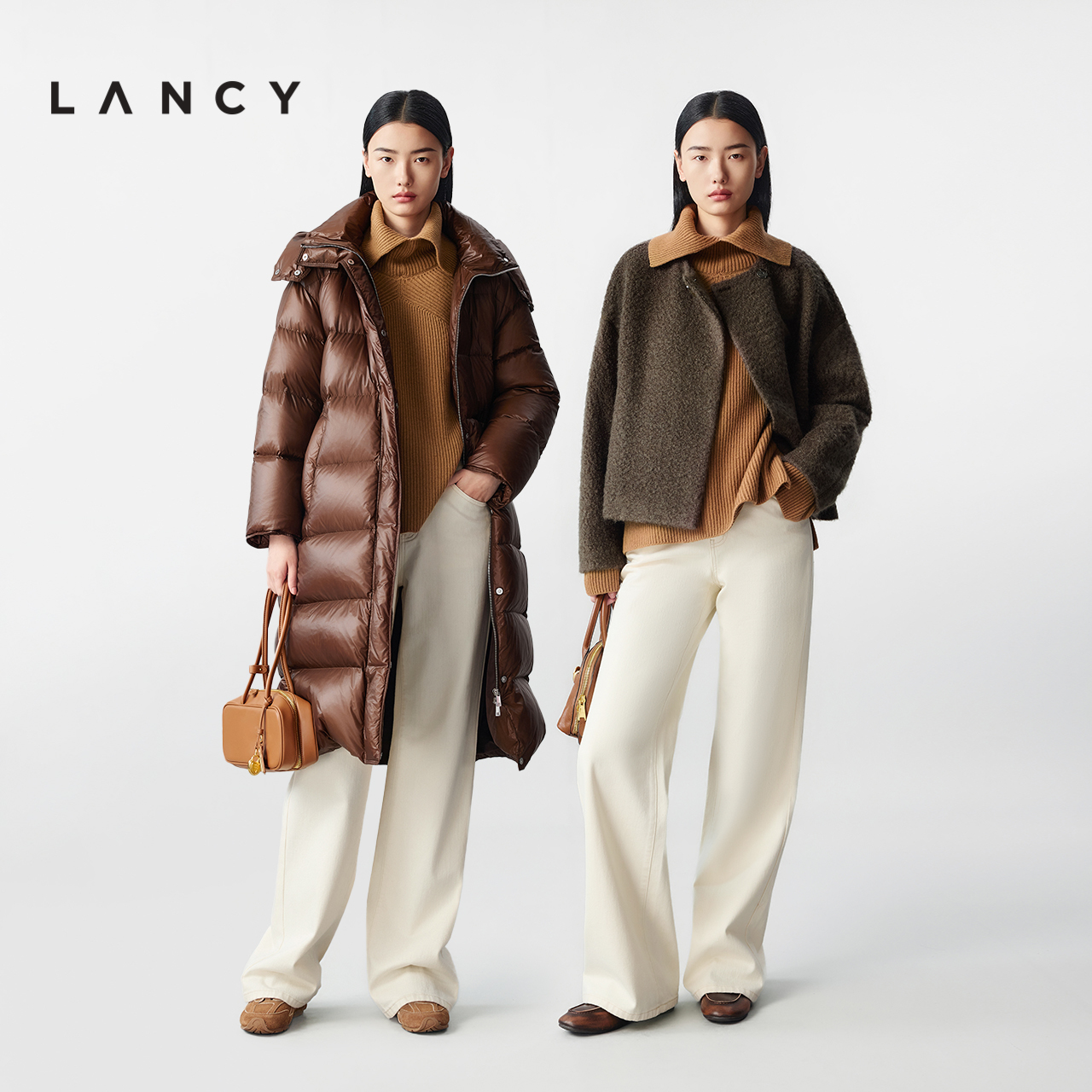 羊毛羊绒 高翻领廓形针织衫 LANCY 气质时尚 毛衣 朗姿2025冬新款