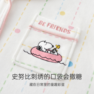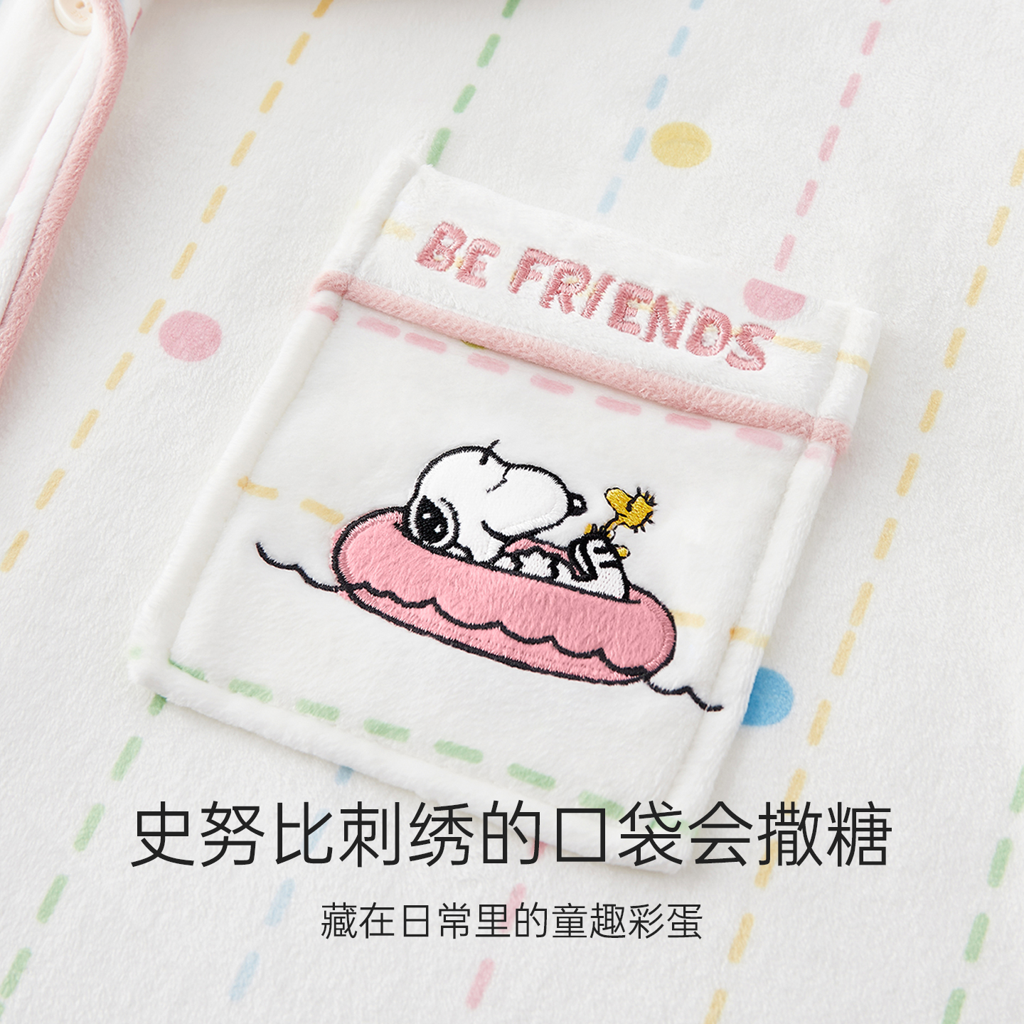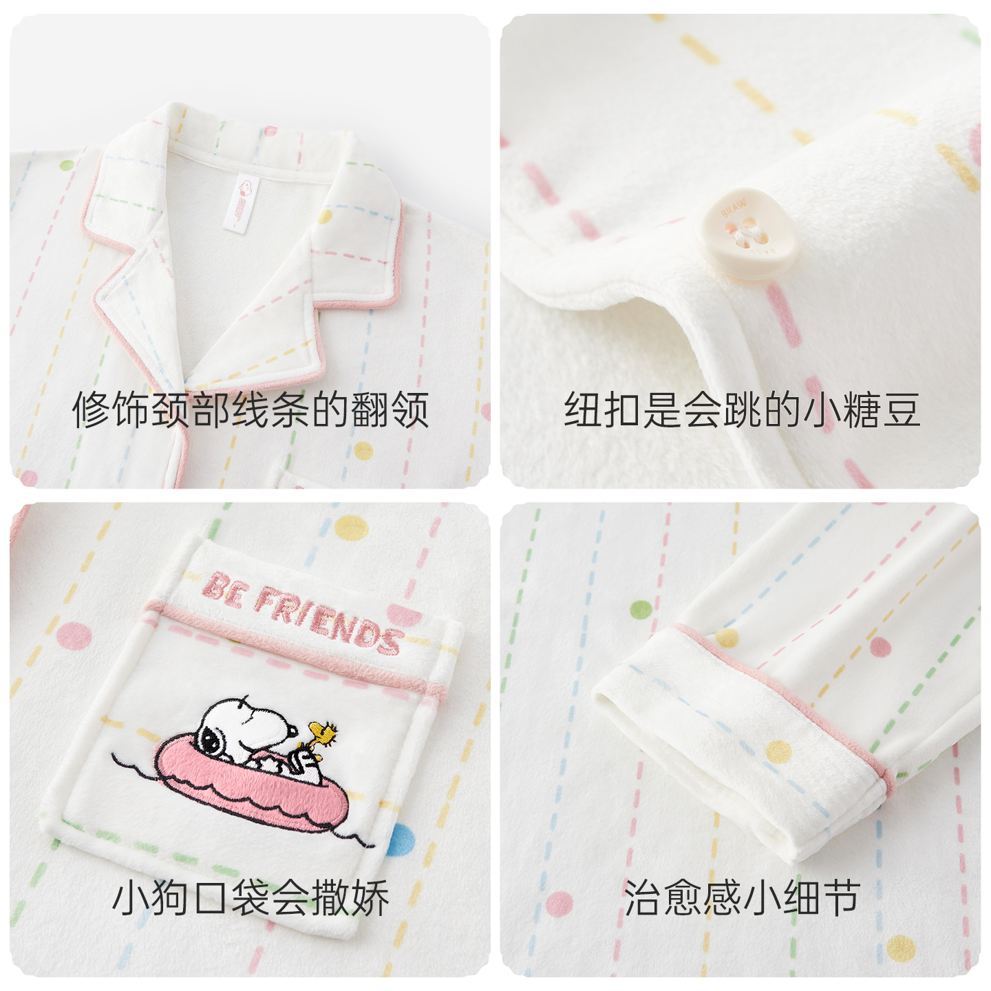 长裙波点长款 冬季 睡衣珊瑚绒冬天法兰绒 长袖 史努比海岛绒睡裙女款