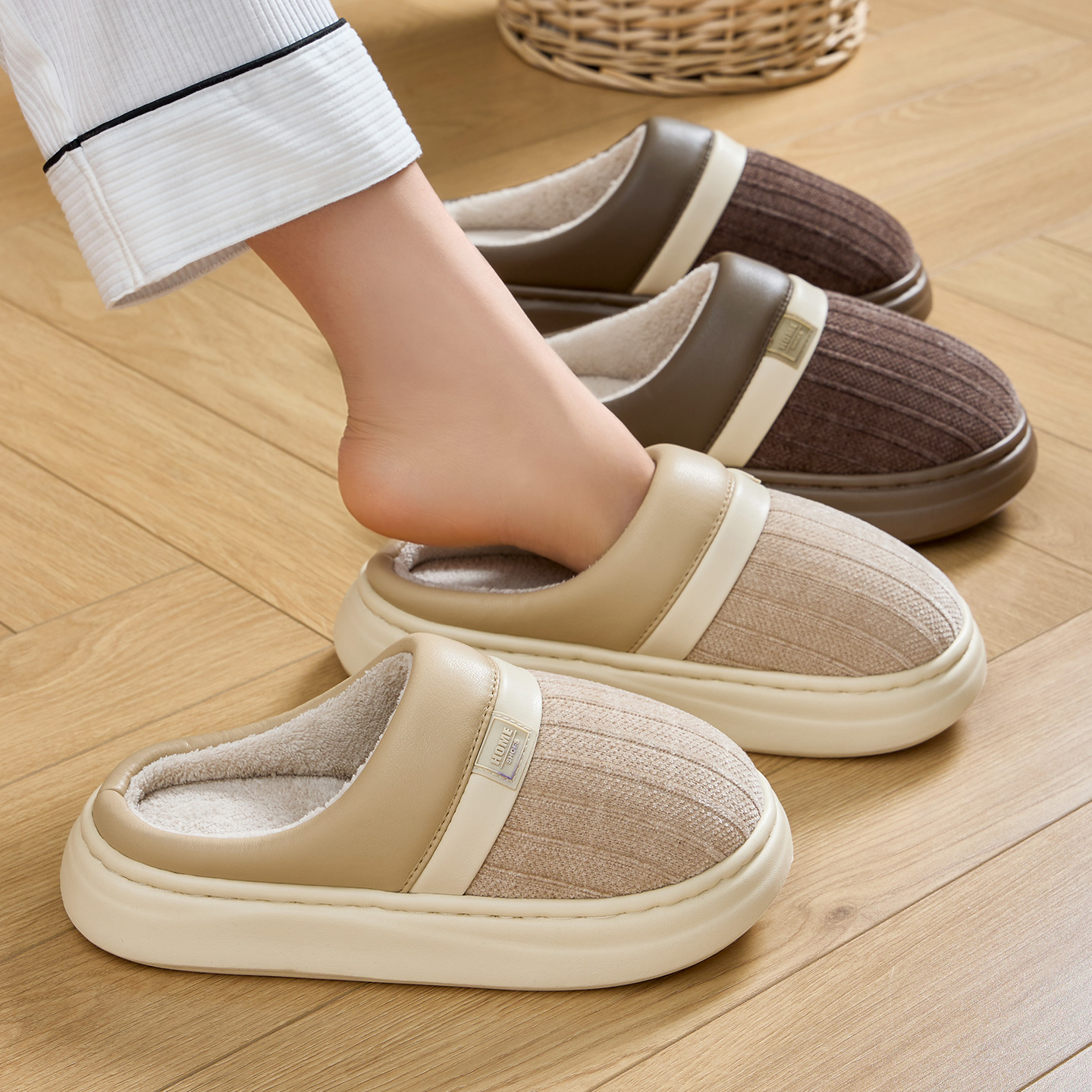 厚底防滑防臭加绒保暖高级感室内家居拖鞋 秋冬季 女 男士 抗菌棉拖鞋