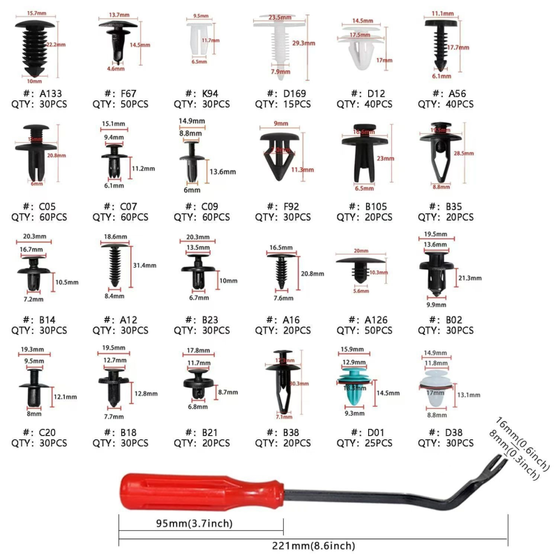 800pcs汽车通用盒装 塑料膨胀螺丝紧固件卡子保险杠挡泥板套件
