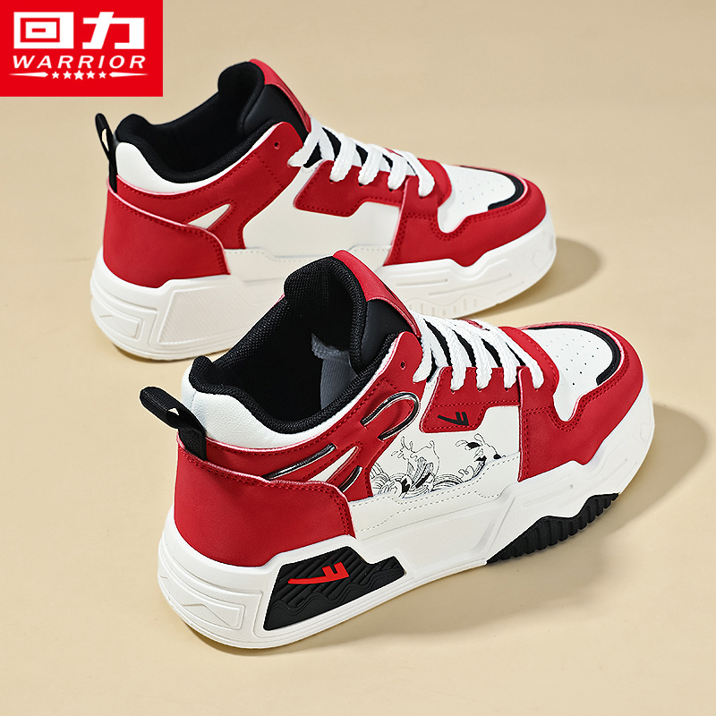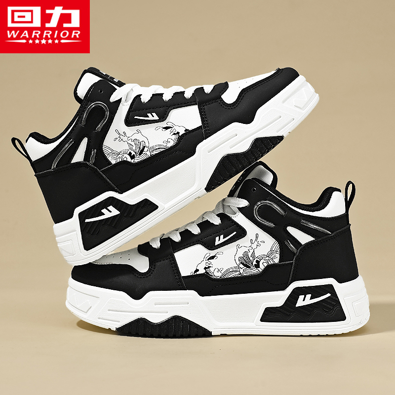 男鞋 子学生运动鞋 新款 皮面鞋 秋冬高帮休闲鞋 电池熊猫鸿星尔克板鞋