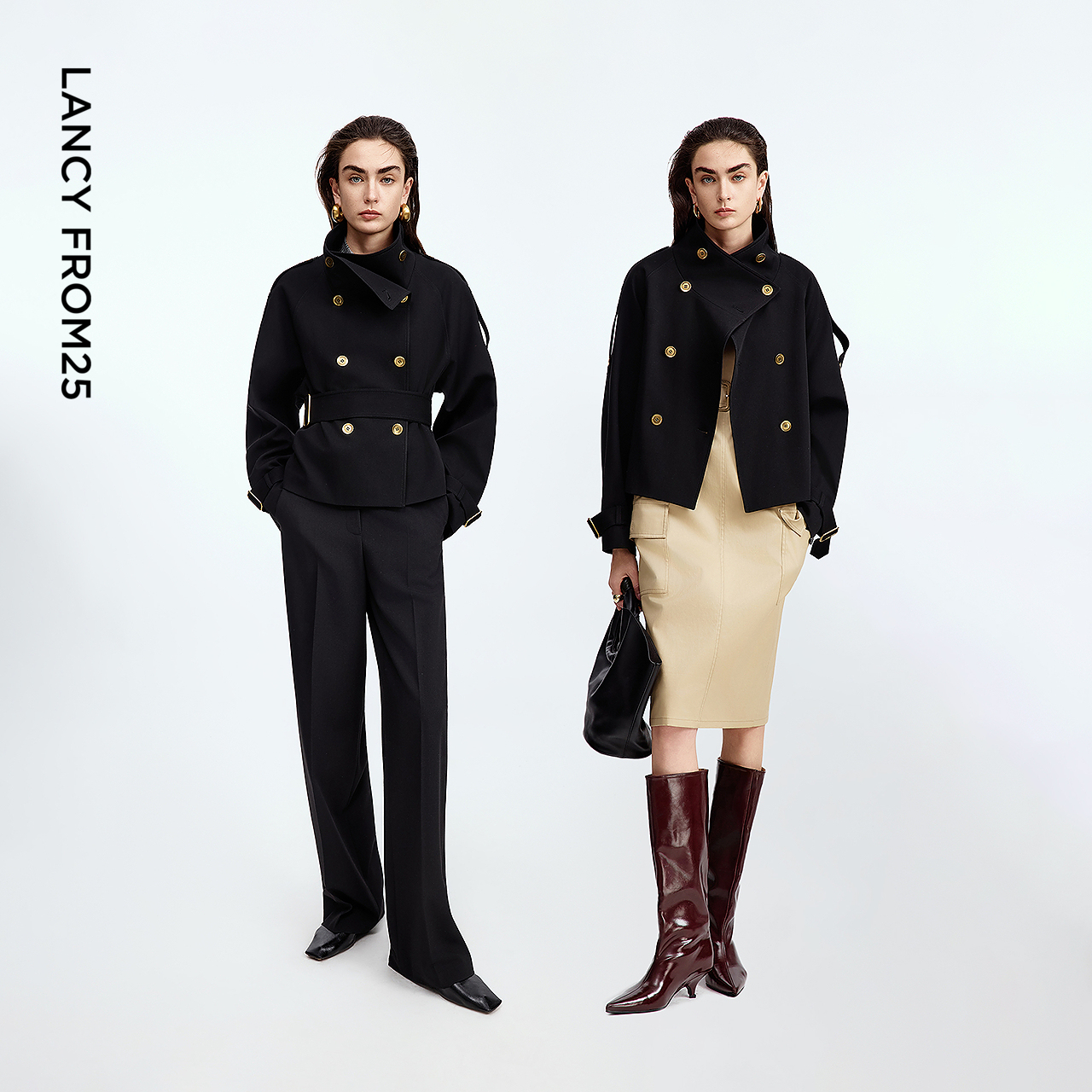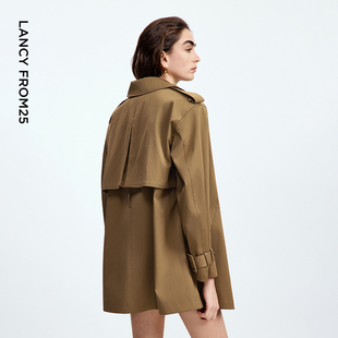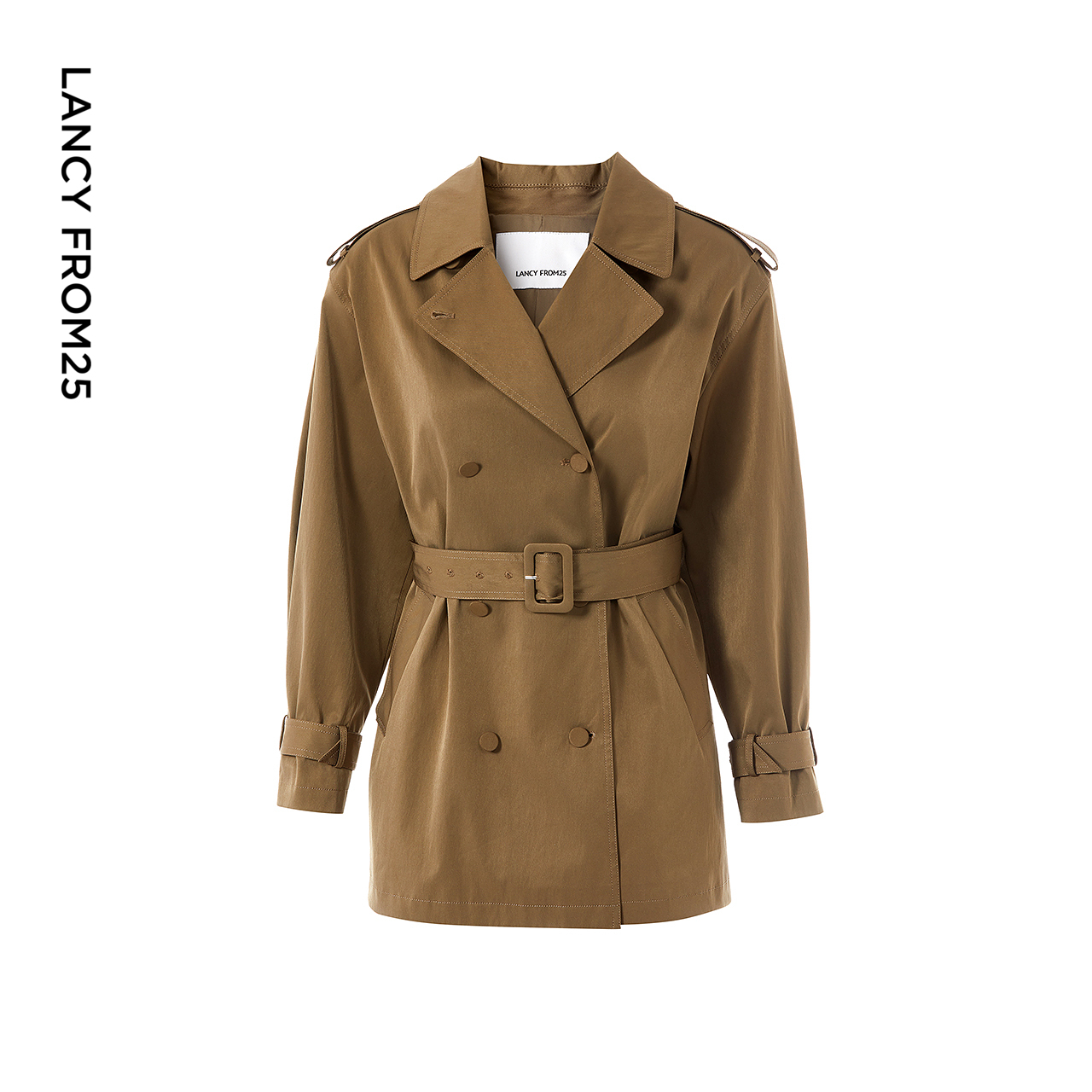 敦煌系列LILY2025秋新款 复古雅丹风长绒棉通勤卡其色风衣外套 女装