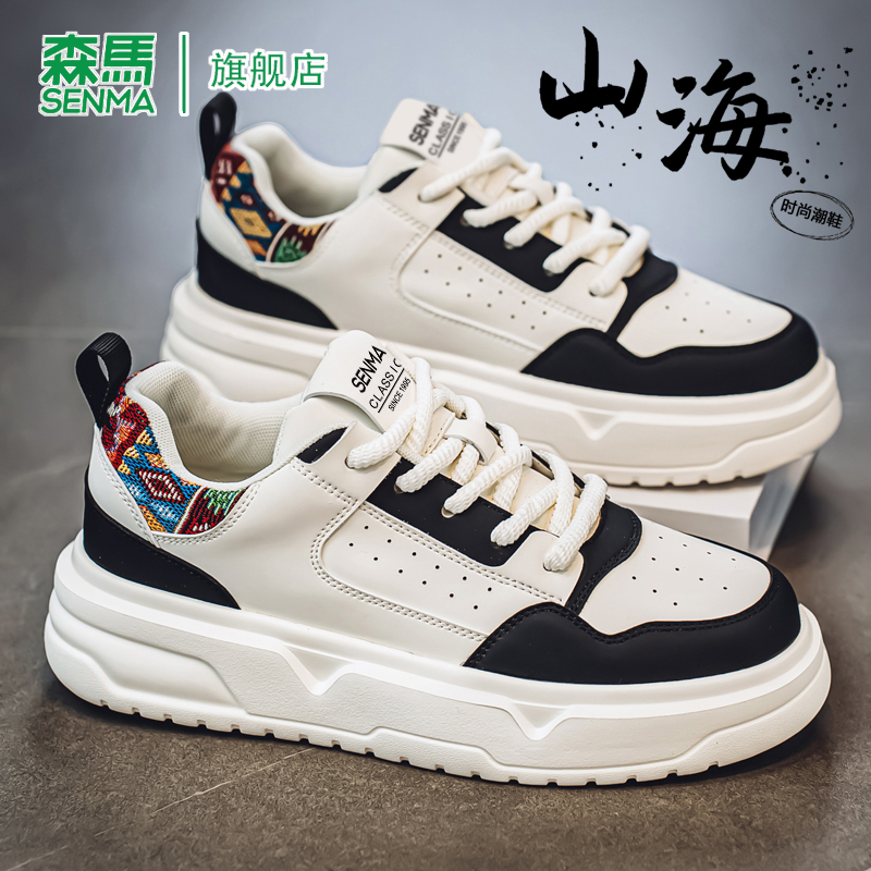 软底真皮增高防滑运动青少年潮流百搭小白鞋 秋季 男款 森马休闲板鞋