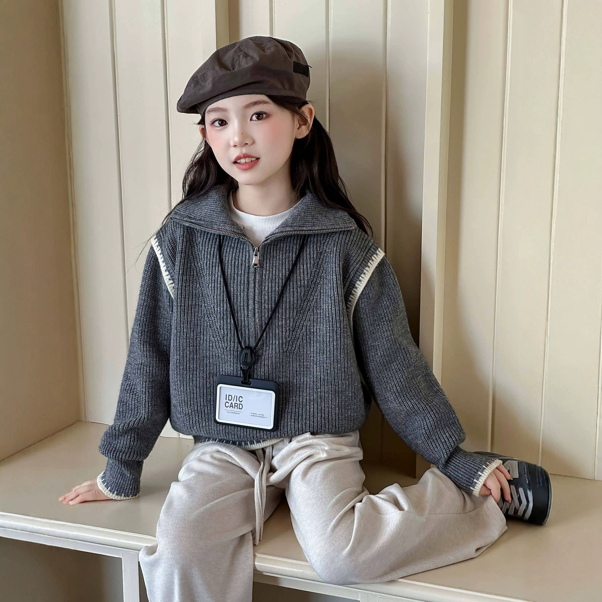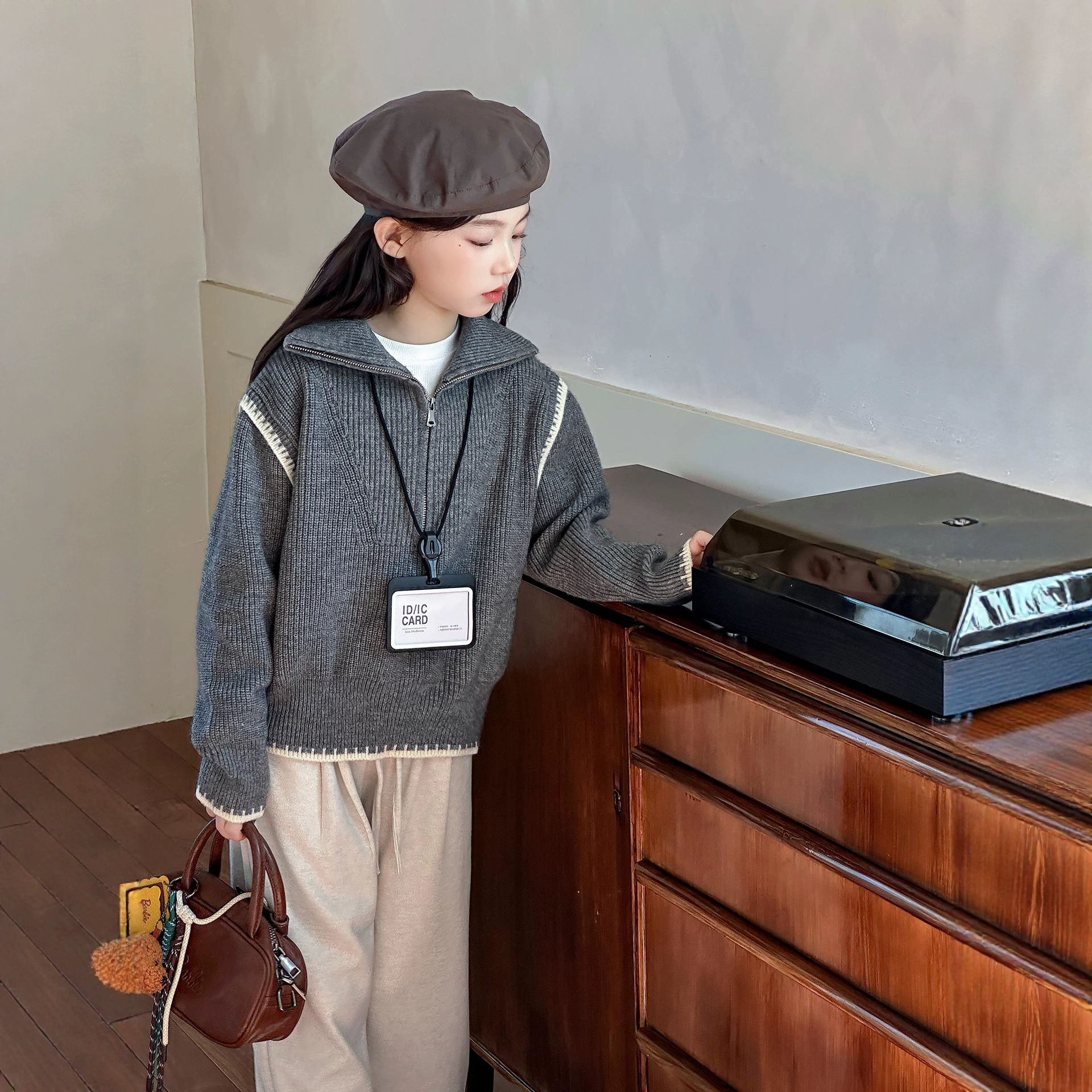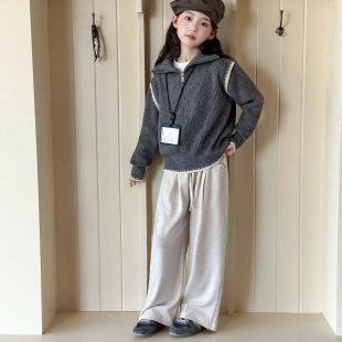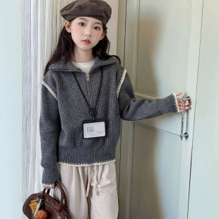 针织衫 宽松减龄穿搭显瘦长袖 设计感小众后背开叉毛衣女 新款 秋冬季