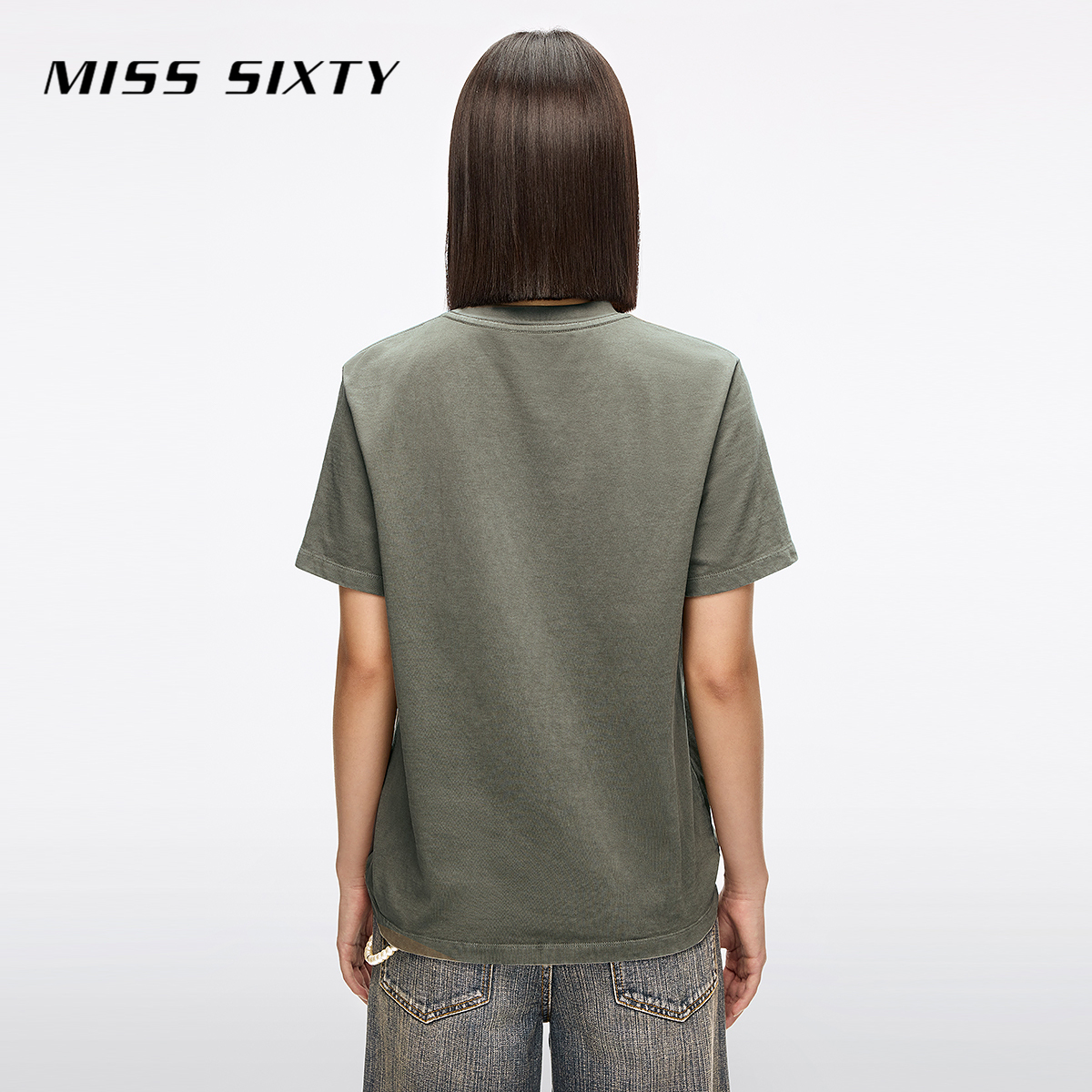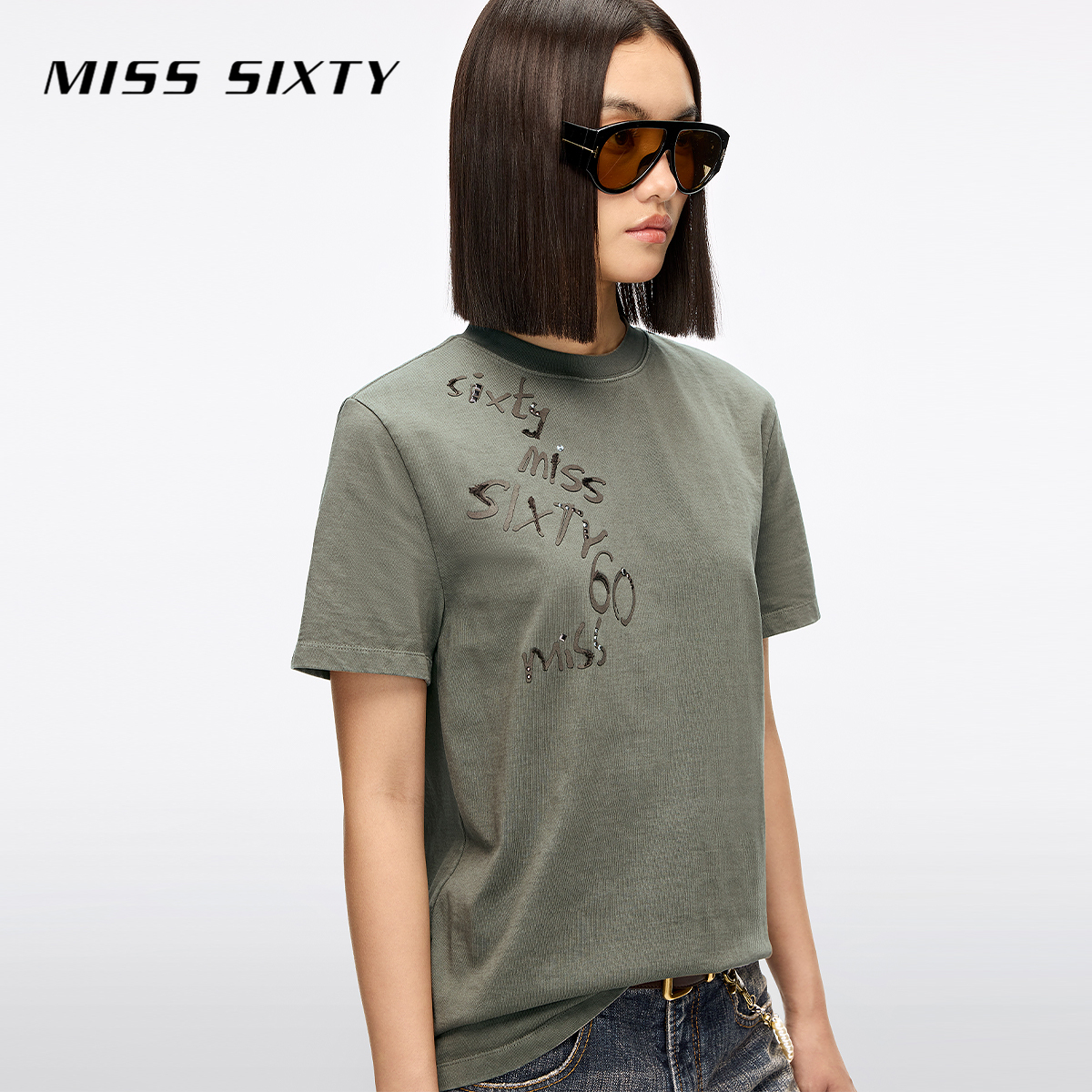 棉质短袖 新款 T恤女圆领烫钻拼贴刺绣设计上衣 Sixty2025冬季 Miss