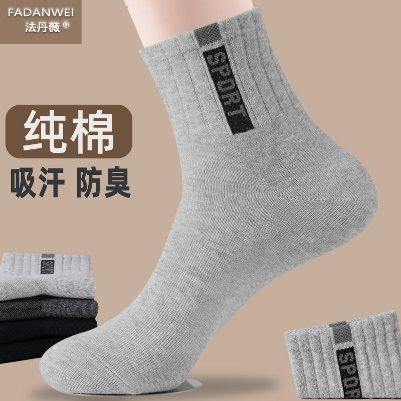 袜子男纯棉中筒春秋吸汗防臭全棉长袜黑色运动袜秋冬男袜男士 棉袜