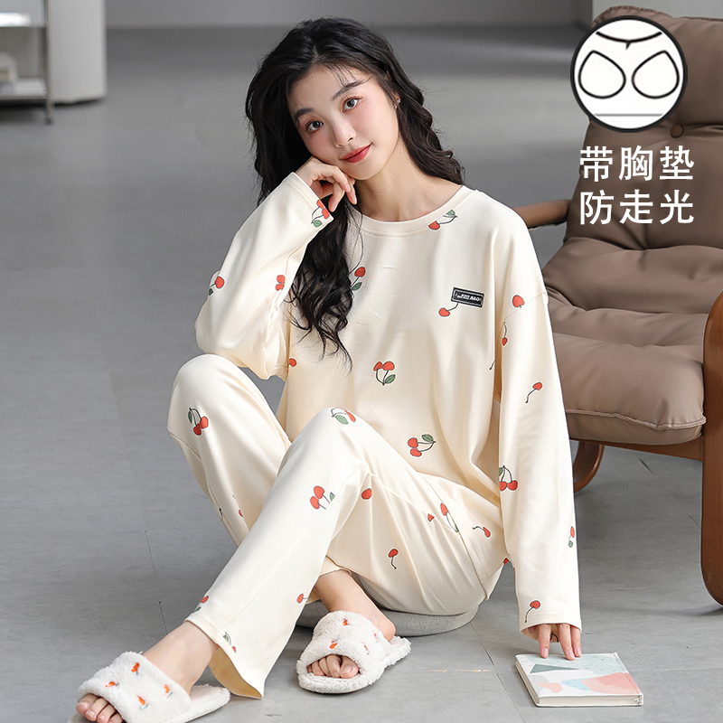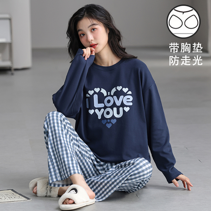 宽松休闲大码 芬腾女士睡衣春秋季 套装 套头秋款 全棉家居服 纯棉长袖