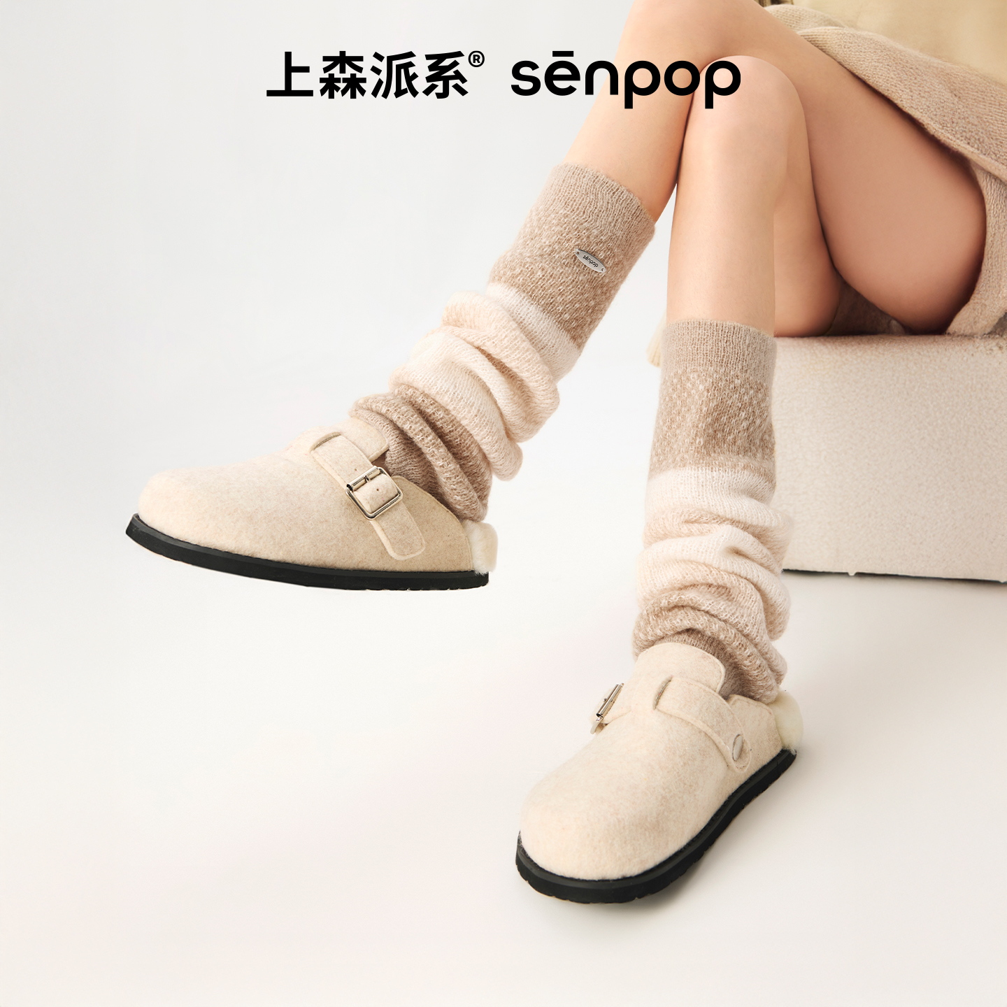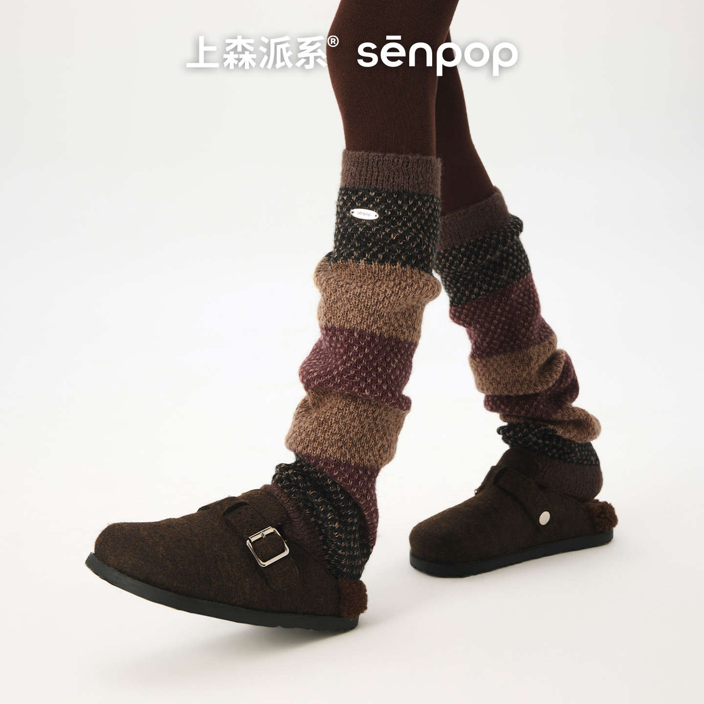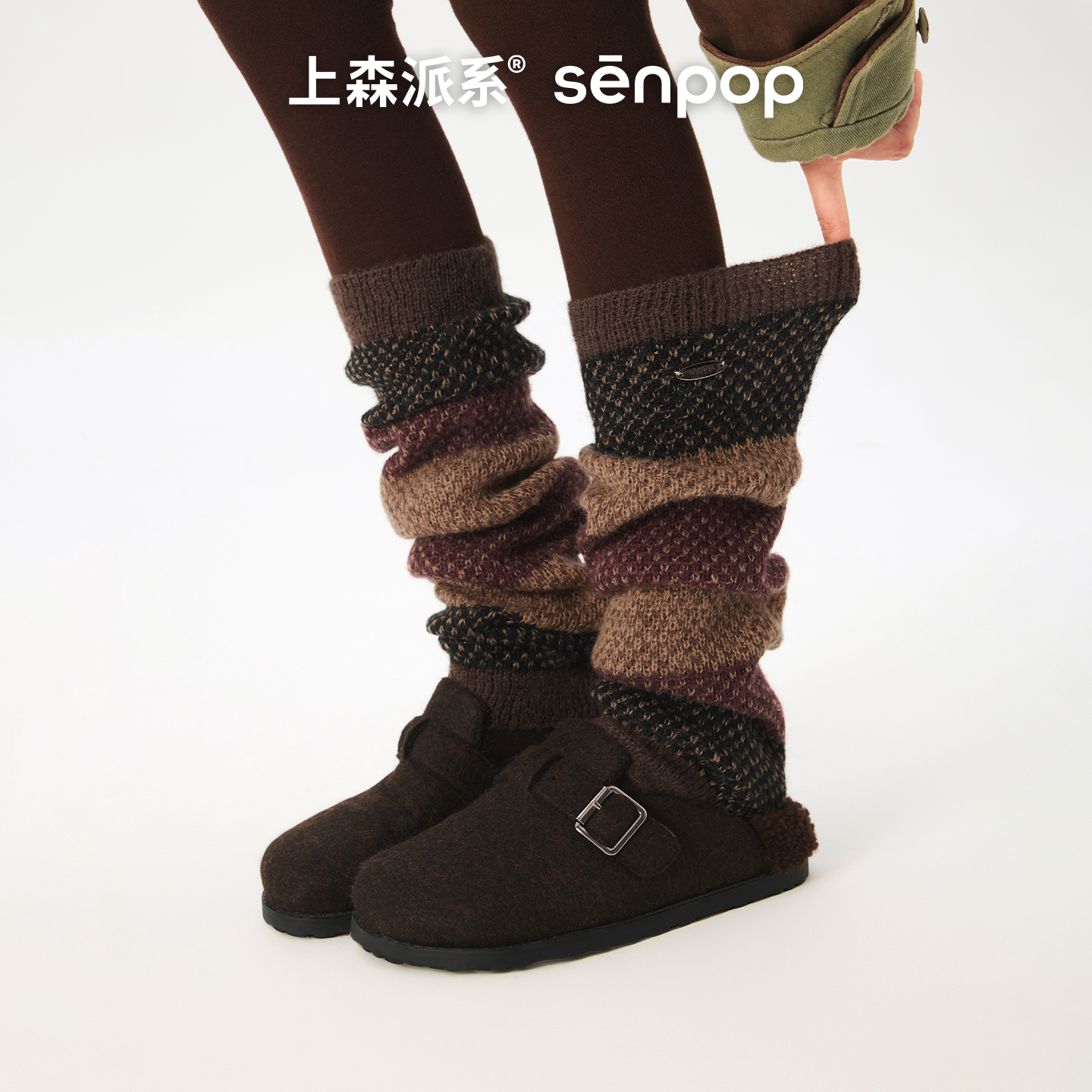 上森羊毛堆堆小腿袜套女秋冬款 厚袜子多巴胺袜套 长筒袜套搭勃肯鞋