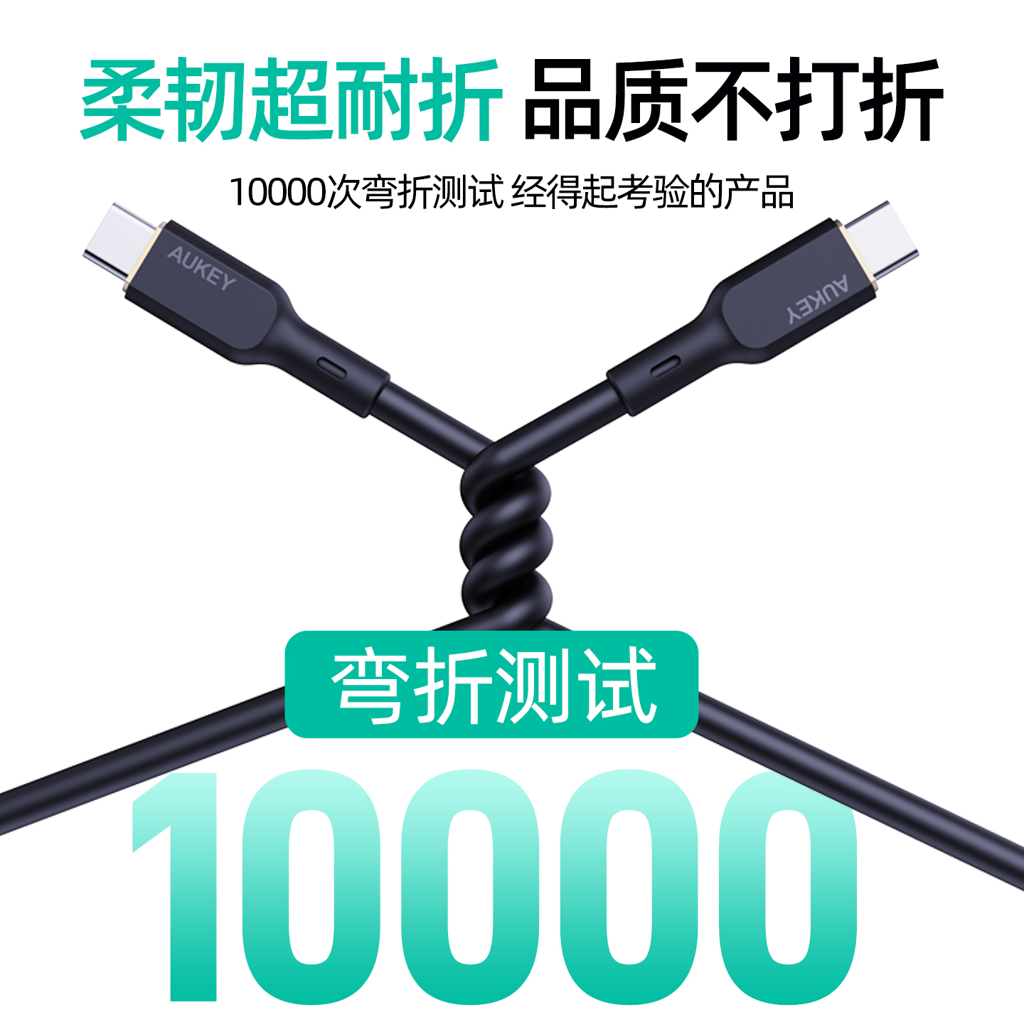 AUKEY240Wtypec硅胶数据线PD闪充适用于iPhone17 16promax华为macbook小米ipadpro电脑笔记本手机ctoc快充线