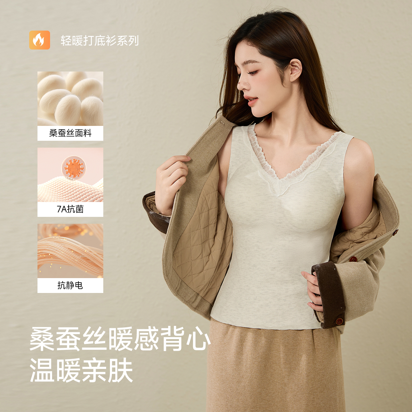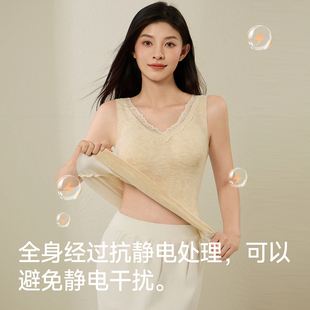 猫人保暖背心女带胸垫2025秋冬新款 外搭穿双面磨绒发热防寒上衣