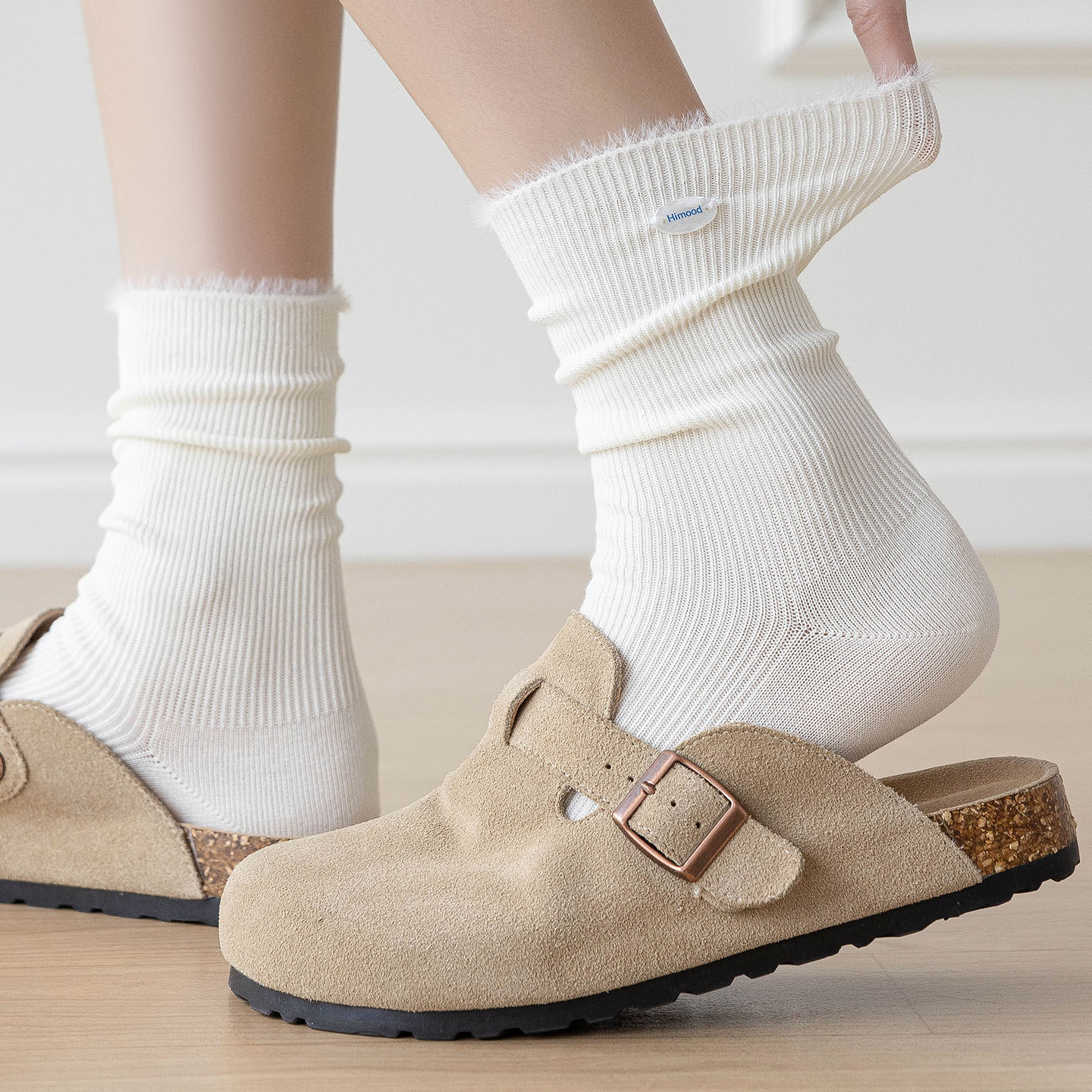 袜子女中筒袜纯色棉袜防臭ins潮白色运动学生新疆棉短袜秋季 防滑