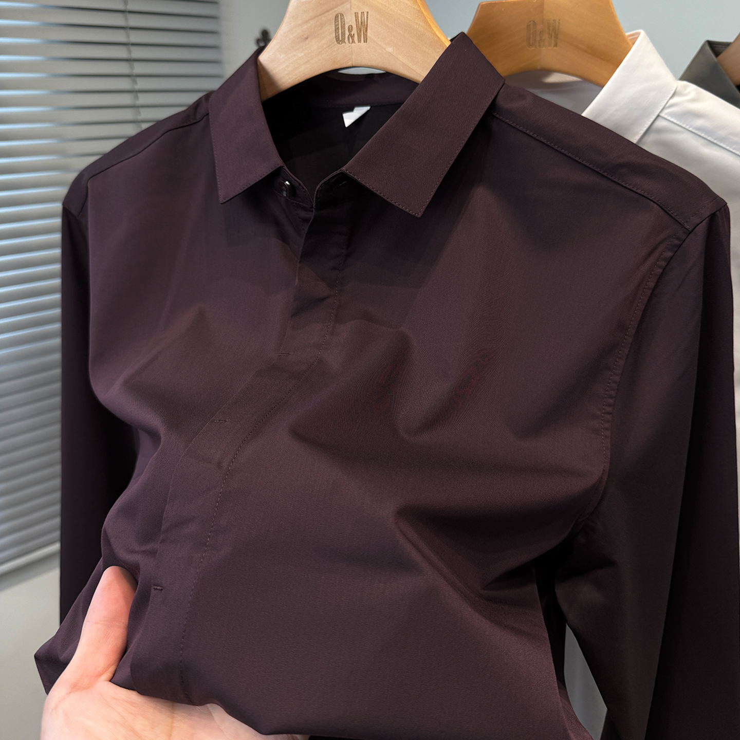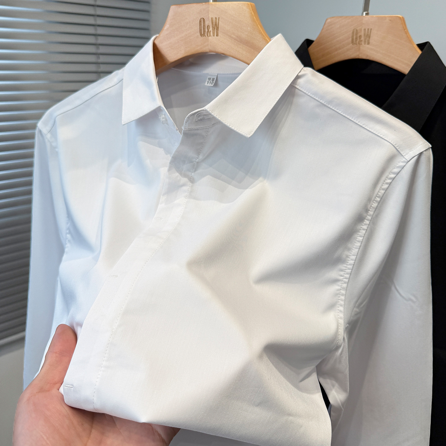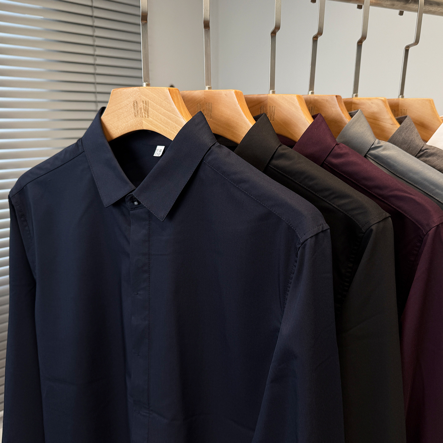男士 免烫弹力寸衫 长袖 商务休闲正装 西服内搭高档衬衣秋季 黑色衬衫